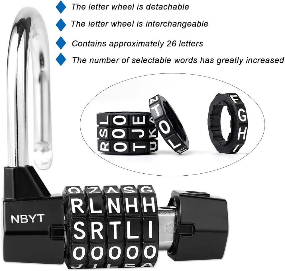 رمز قابل للتخصيص: يتيح لك نظام مجموعة الحروف القابل لإعادة الضبط بالكامل إنشاء رموز شخصية. قم بتعيين رموز لا تُنسى (كلمات/أسماء) لتوفير الأمان العالي؛ إعادة تعيين المجموعة بحرية