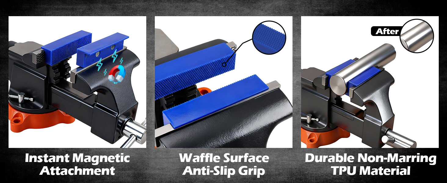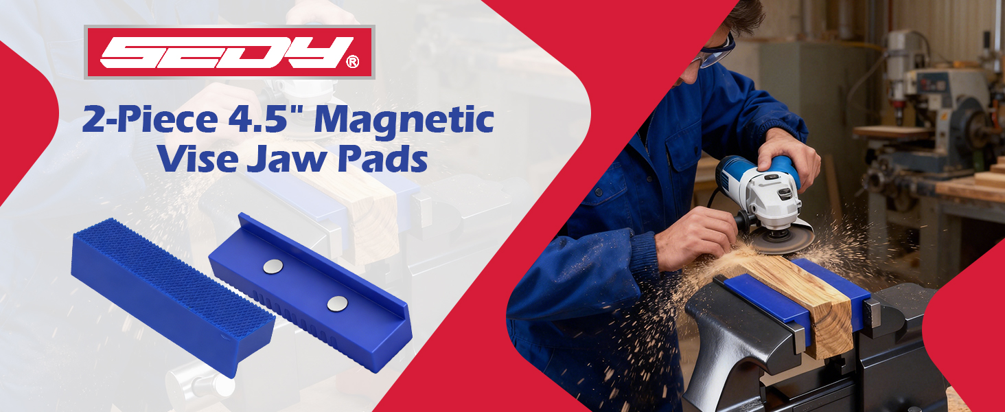 مقبض مغناطيسي قوي - مغناطيسات قوية مدمجة تحافظ على الوسادات مثبتة بإحكام برؤوس المقعد، مما يضمن قبضة ثابتة ويمنع التحرك أثناء أعمال الأعمال المعدنية أو أعمال النجارة.