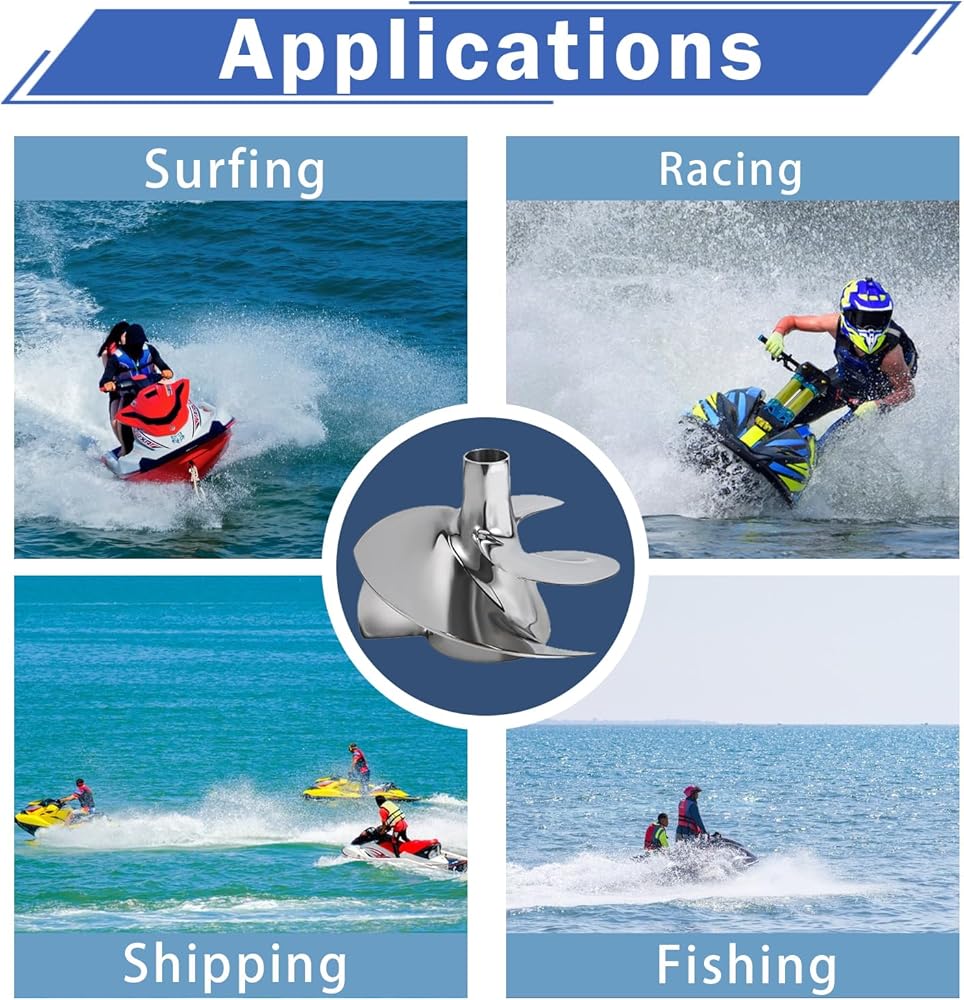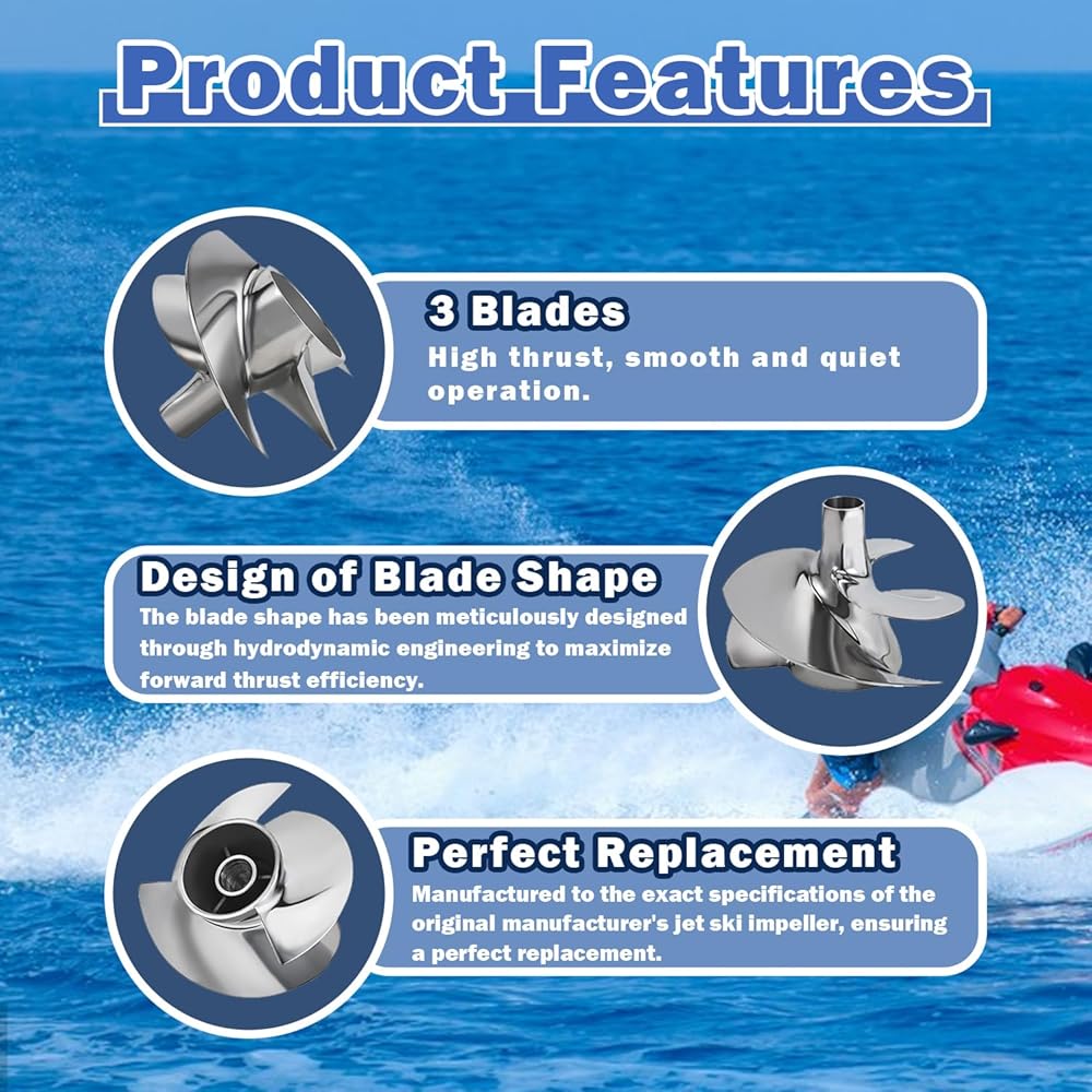 تحسين الأداء: تتميز دفاعة جت سكي الخاصة بنا بتصميم ثلاثي الشفرات، مما يوفر إزاحة فعالة للمياه لتسريع فائق وقدرات السرعة القصوى. فهو يحسن تدفق المياه، مما يؤدي إلى أداء عام أفضل. سطح المكره المصقول يقلل الاحتكاك، مما يجعل التشغيل أكثر سلاسة.