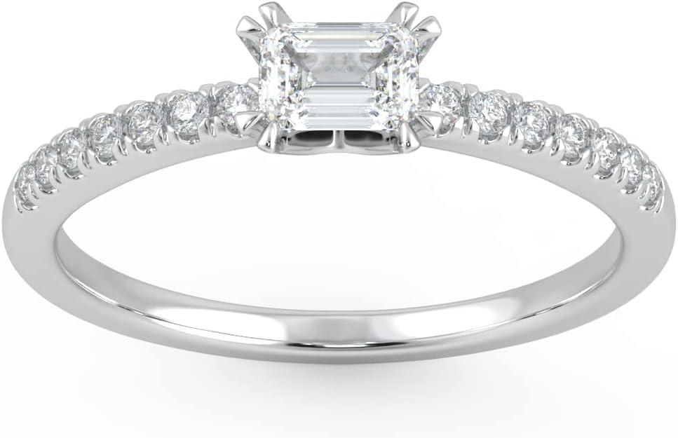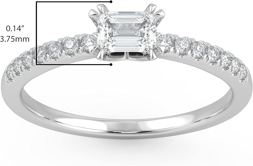 مجموعة من التوافقات - تعد قطع الماس المعملية الخاصة بنا من أعلى أنواع الألماس المتاحة عبر الإنترنت، حيث تتراوح ألوان الماس من G إلى H ونقاء الماس يتراوح من VS1 إلى VS2. يتميز خاتم الخطوبة أو الذكرى السنوية أو خاتم الوعد بحزام مرصع بألماس مزروع في المختبر بوزن 0.36 قيراط من الزمرد موجه من الشرق إلى الغرب. خاتم الخطوبة هذا من الذهب الأبيض عيار 14 قيراط، وهو تعبير مثالي عن الحب والالتزام. سيكون اقتراحك مثاليًا مع خاتم الخطوبة المذهل هذا المصمم على طراز السوليتير