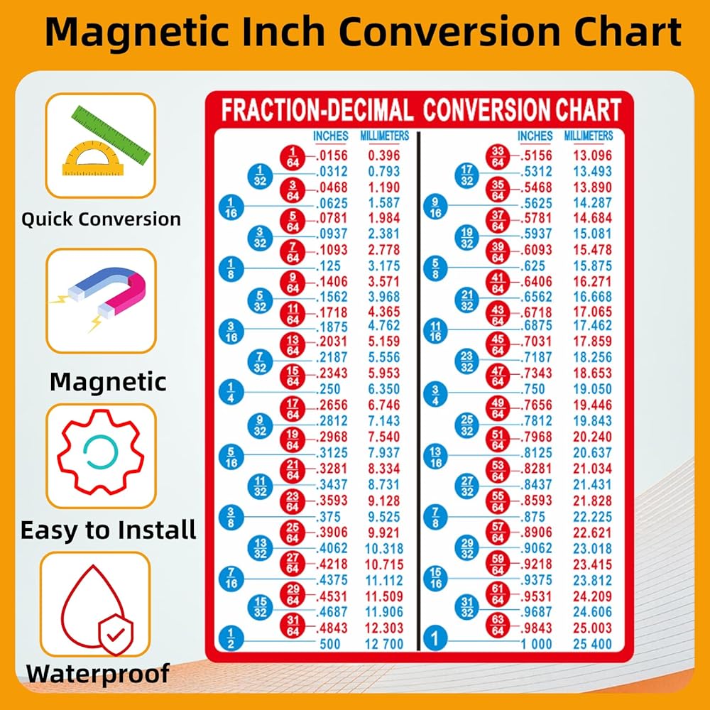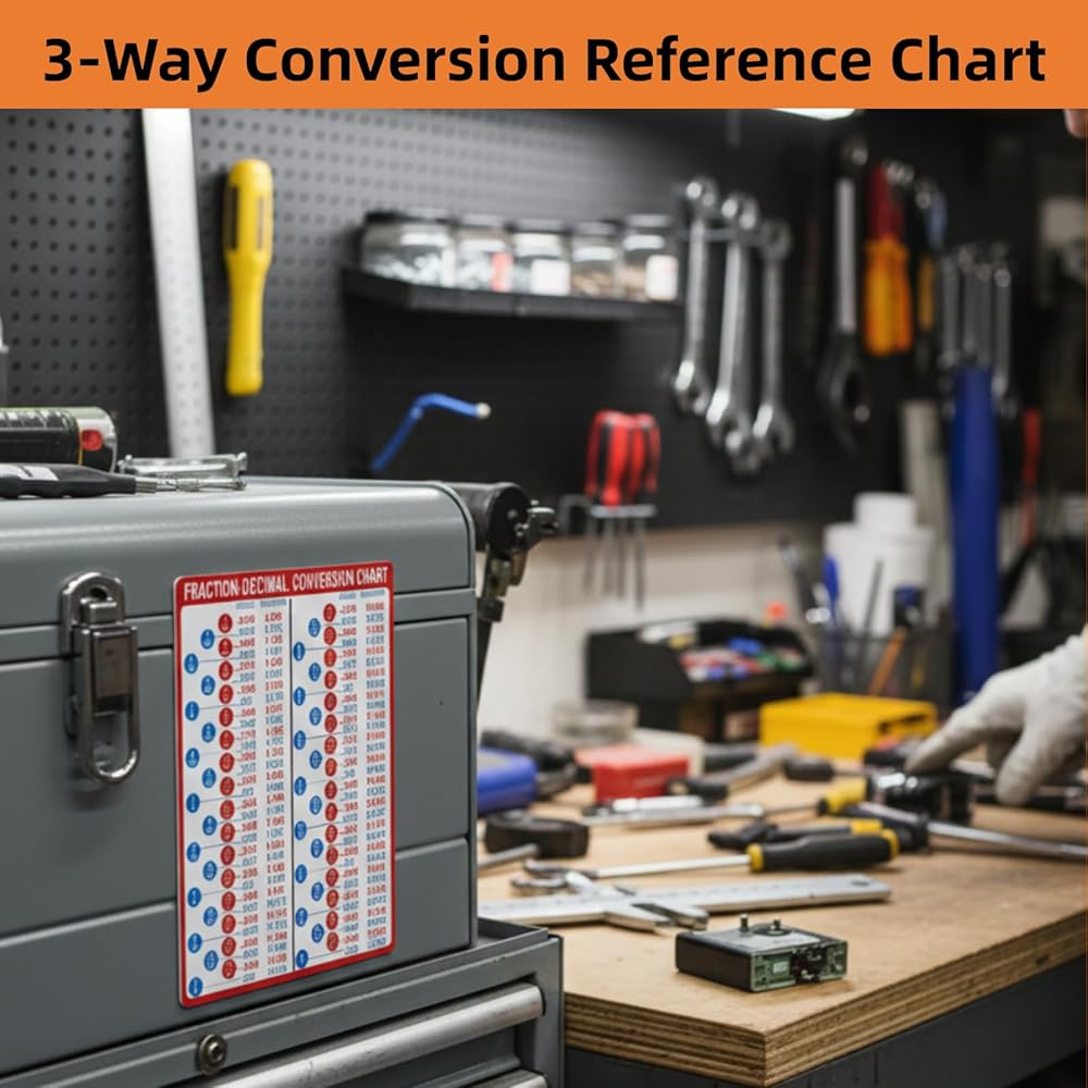 Magnetic & Easy Placement: The magnetic backing attaches securely to toolboxes, machines, or metal walls. This mm to inches conversion chart stays visible and accessible, reducing time spent searching manuals or digital charts.