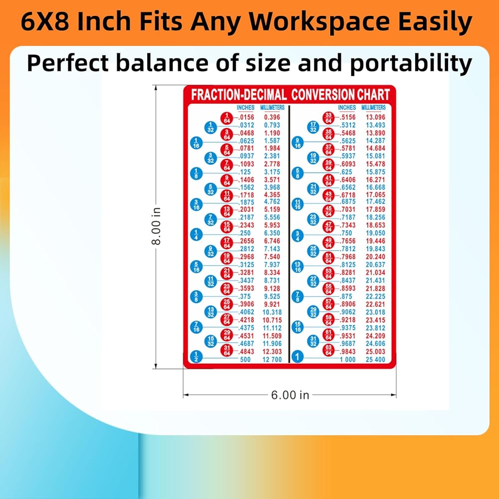 Readable 6×8 Format: Optimized for clarity, the chart balances readability and space saving. As a cm to inches conversion chart and full size conversion chart, it fits most tool storage areas while remaining easy to read at a glance.