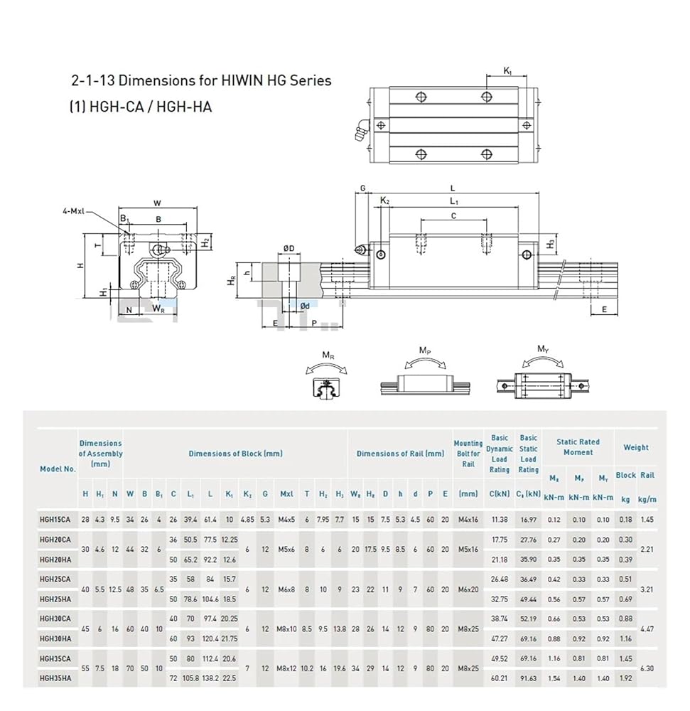 4 قطع منزلق HGH20CA، ومنزلق HGR20، ودليل خطي 20 مم