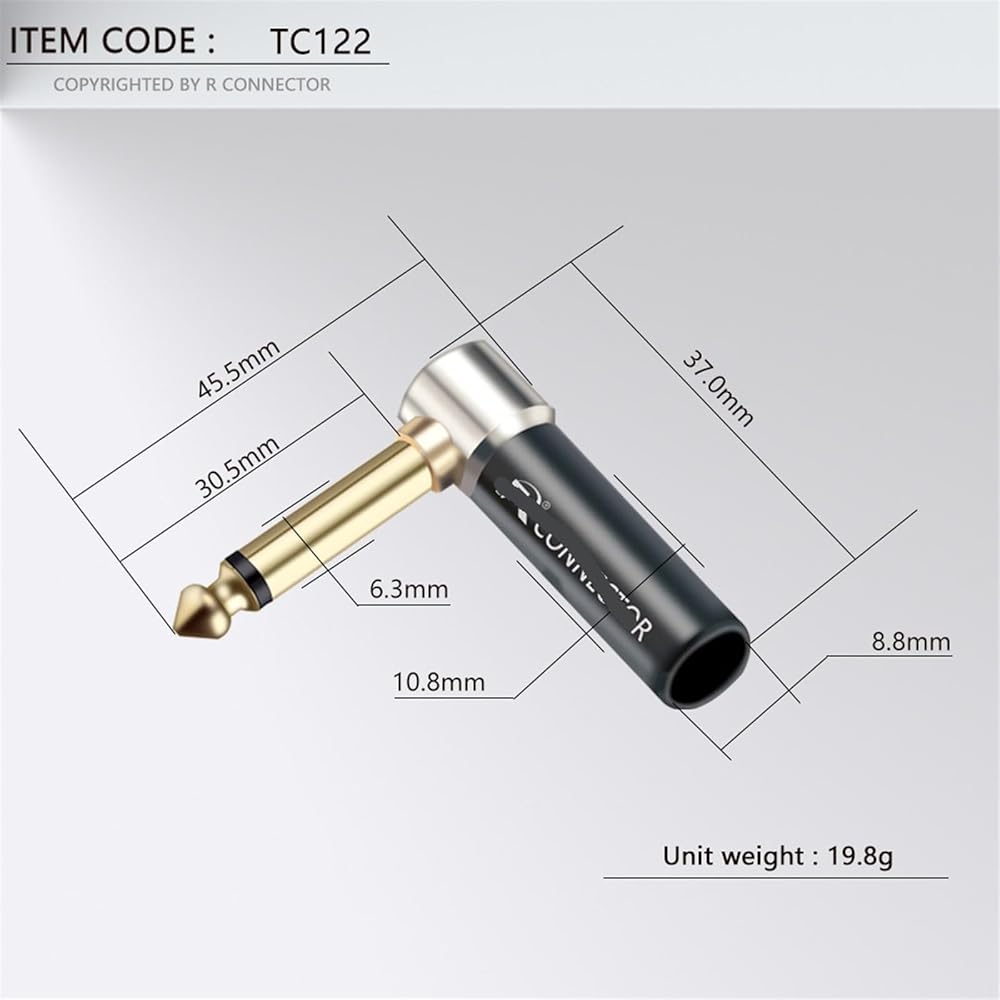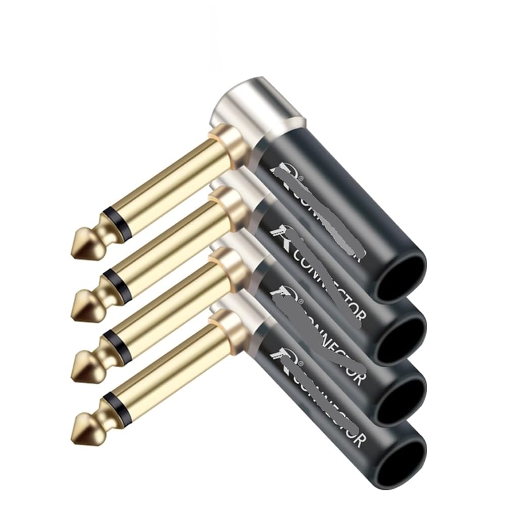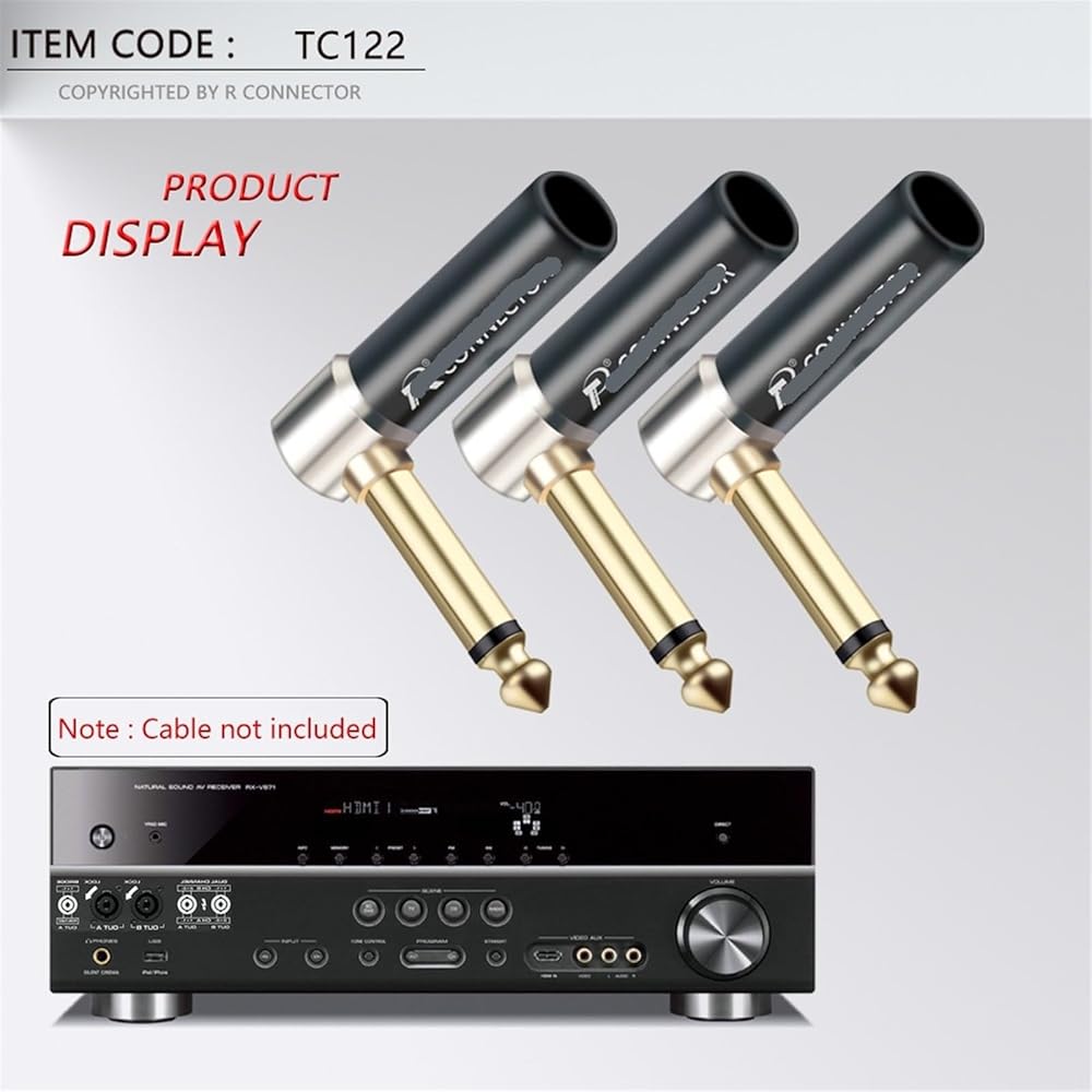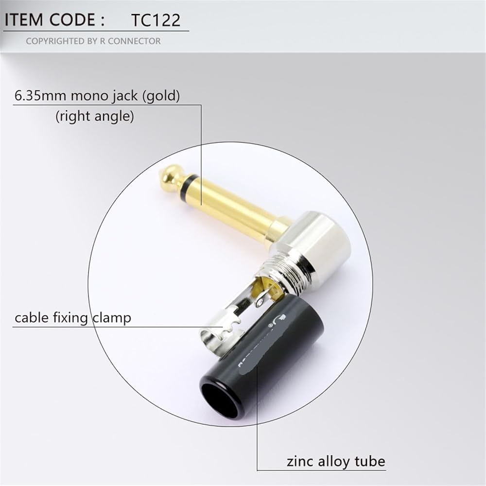 2PCS 6.35MM 2 Pole Mono Male Plug Right Angle Wire Connector Jack 6.35MM Plug Microphone Connector