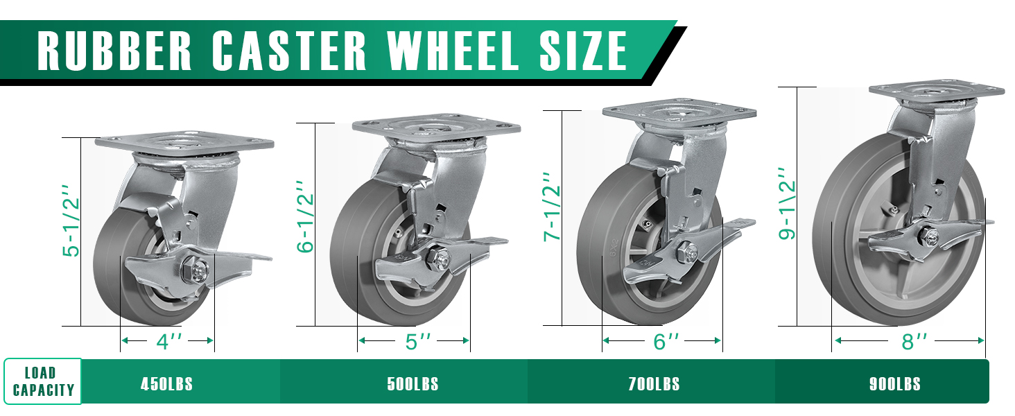 • 【حجم عجلة العجلة】: قطر حجم عجلة العجلة: 6 بوصات، العرض: 2 بوصة، طول المحور: 2-7/16، مع محمل أسطواني ¾ بوصة، جلبة مفتاح ربط التعريف. أربع عجلات مقاس 6 بوصات يمكن أن تدعم الحمل 2800 رطل، قدرة تحمل قوية، لذلك يمكنك الشراء والاستخدام بثقة.