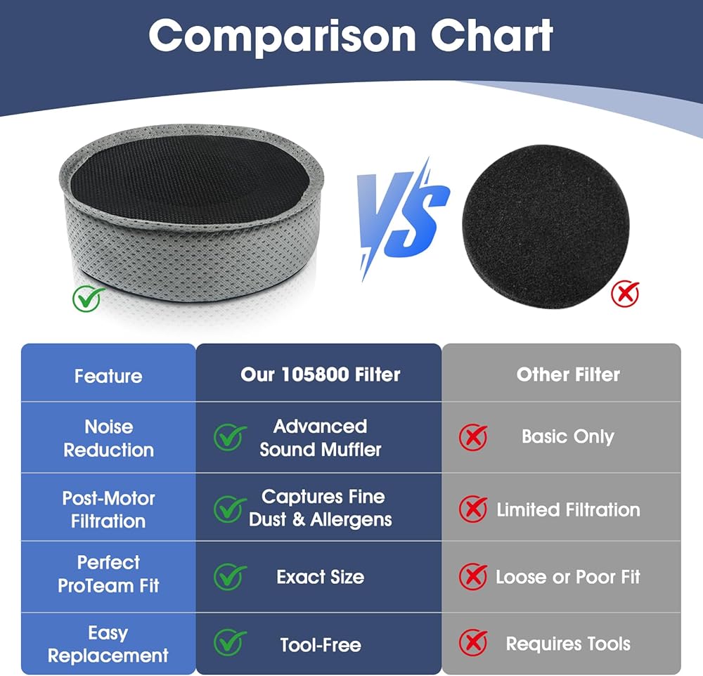 - ✅ملاءمة مثالية: كاتم صوت 105800 لمكنسة الظهر ProTeam بسعة 6 أرباع، بما في ذلك Super QuarterVac وAviationVac وProVac BP