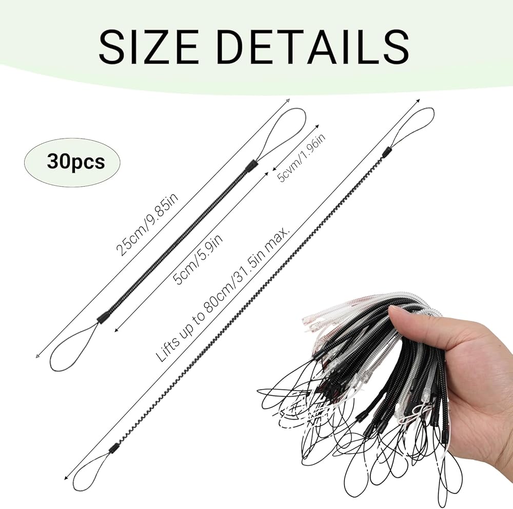 حزمة كمية كبيرة: تتضمن 30 قطعة من حبل الحبل المرن، تتميز بـ 15 سلكًا أسود و15 سلكًا شفافًا. مثالي للمدارس والمكاتب والعيادات والاستوديوهات الفنية، مما يضمن حصولك دائمًا على سلسلة احتياطية متاحة