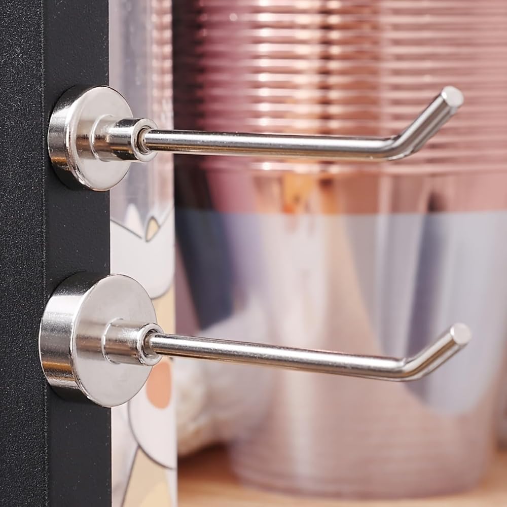 مادة النيوديميوم شديدة التحمل: قوية ومتينة مصنوعة من مغناطيس بورون حديد النيوديميوم عالي الجودة، تتميز هذه الخطافات المغناطيسية بمغناطيسية قوية للغاية، وقدرة تحمل كبيرة، ومقاومة ممتازة للحرارة. على عكس الخطافات البلاستيكية العادية، فإنها لن تتشوه أو تنكسر، مما يضمن استخدامًا موثوقًا طويل الأمد لسنوات.