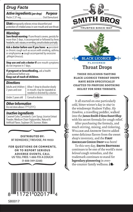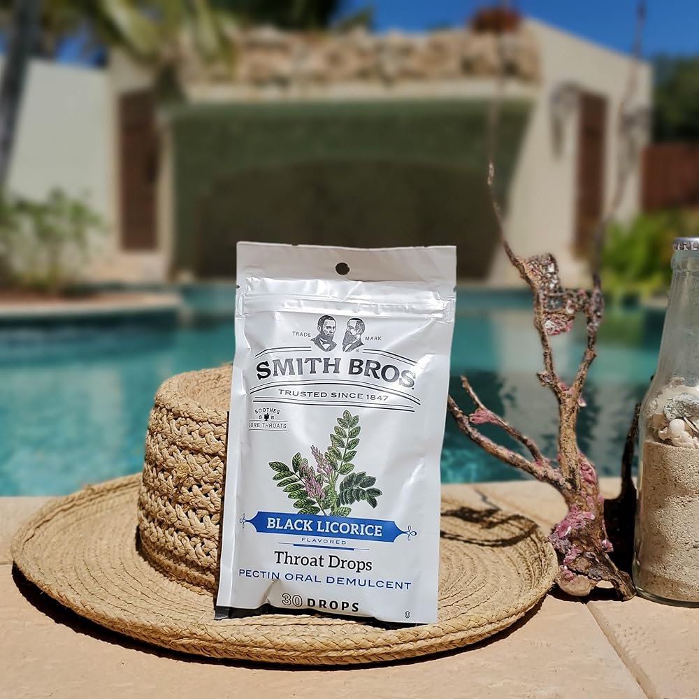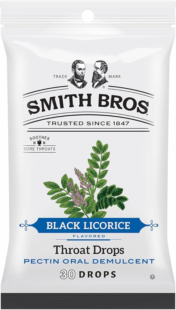 أقراص استحلاب التهاب الحلق مع البكتين من سميث براذرز (عرق السوس الأسود، 4 أكياس): قطرات حلوى عتيقة للحلق - قطرة السعال الأمريكية الأصلية
