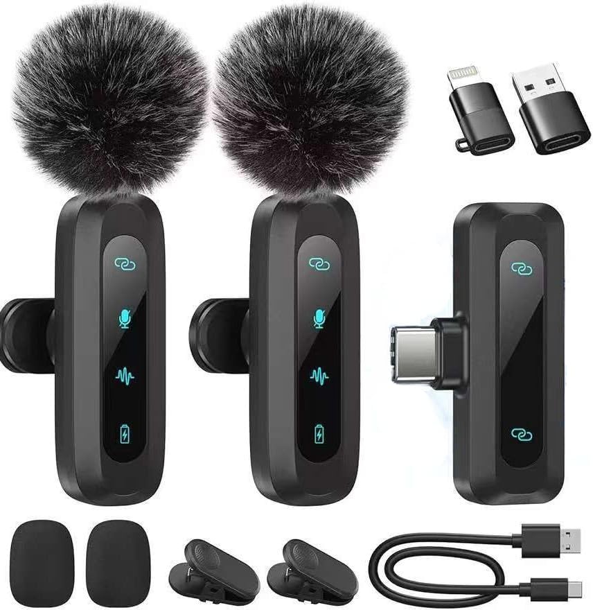 ميكروفون لافالير لاسلكي لهواتف iPhone - ميكروفون صغير يعمل بنظام Android وأجهزة الكمبيوتر المحمول مع تقليل الضوضاء، والاقتران التلقائي وكتم الصوت وعكس تسجيل الفيديو والمقابلات والمؤتمرات ومدونة الفيديو (عبوتان)