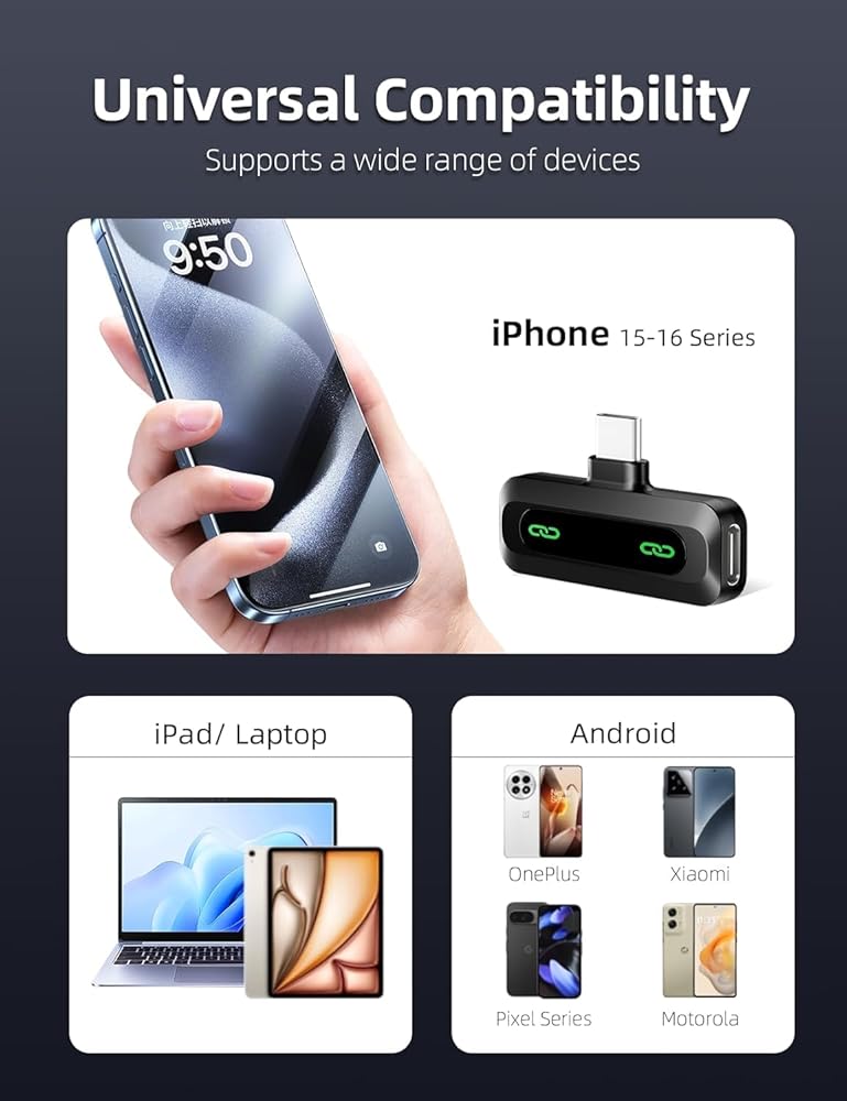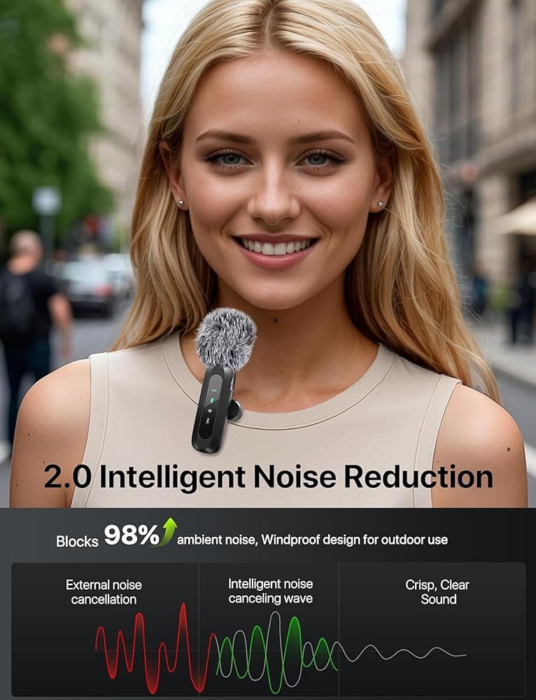 صوت واضح وتقليل الضوضاء: يلتقط الميكروفون اللاسلكي متعدد الاتجاهات لأجهزة iPhone والكمبيوتر الشخصي صوتًا واضحًا بزاوية 360 درجة. تتفوق أوضاع تقليل الضوضاء والصوت الطبيعي في بيئات مختلفة، مما يضمن صوتًا مستقرًا مع تأخير وتشويه منخفض. مثالي كميكروفون صغير لجميع احتياجات التسجيل الخاصة بك