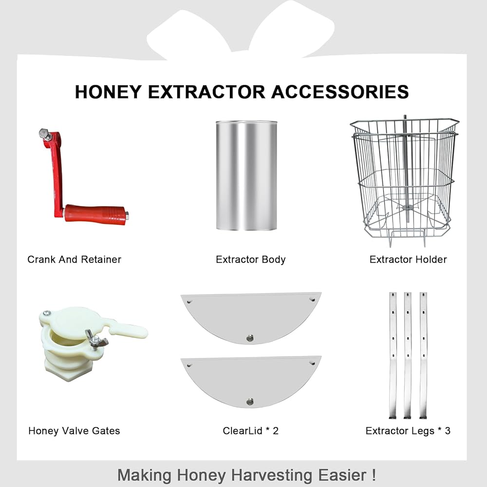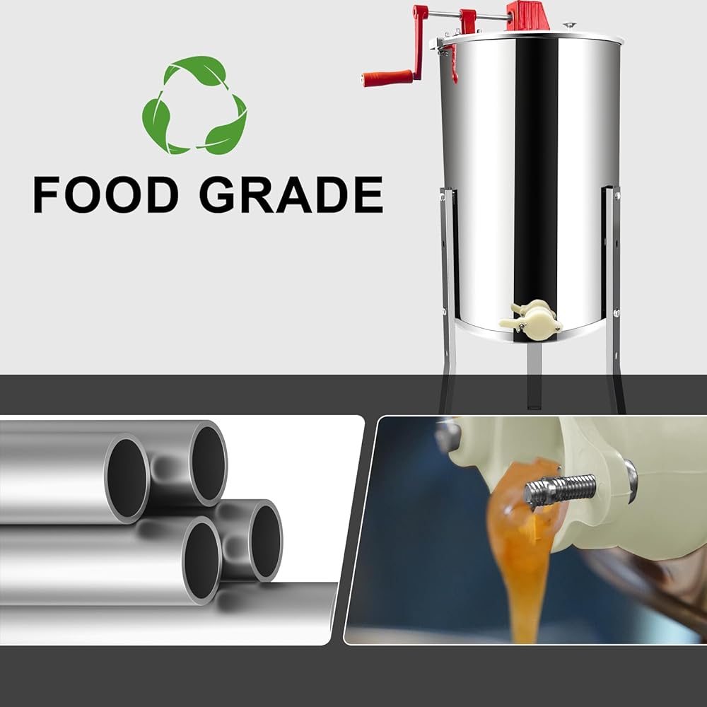 سهل التجميع بخطوات بسيطة فقط. صمام بوابة العسل مصنوع بشكل جيد وسهل التركيب لسهولة الاستخدام. ما عليك سوى وضع قرص العسل في الإطار وتدوير المقبض عالي التحمل لتدويره في وقت قصير. رائعة للهواة أو مربي النحل الصغير.