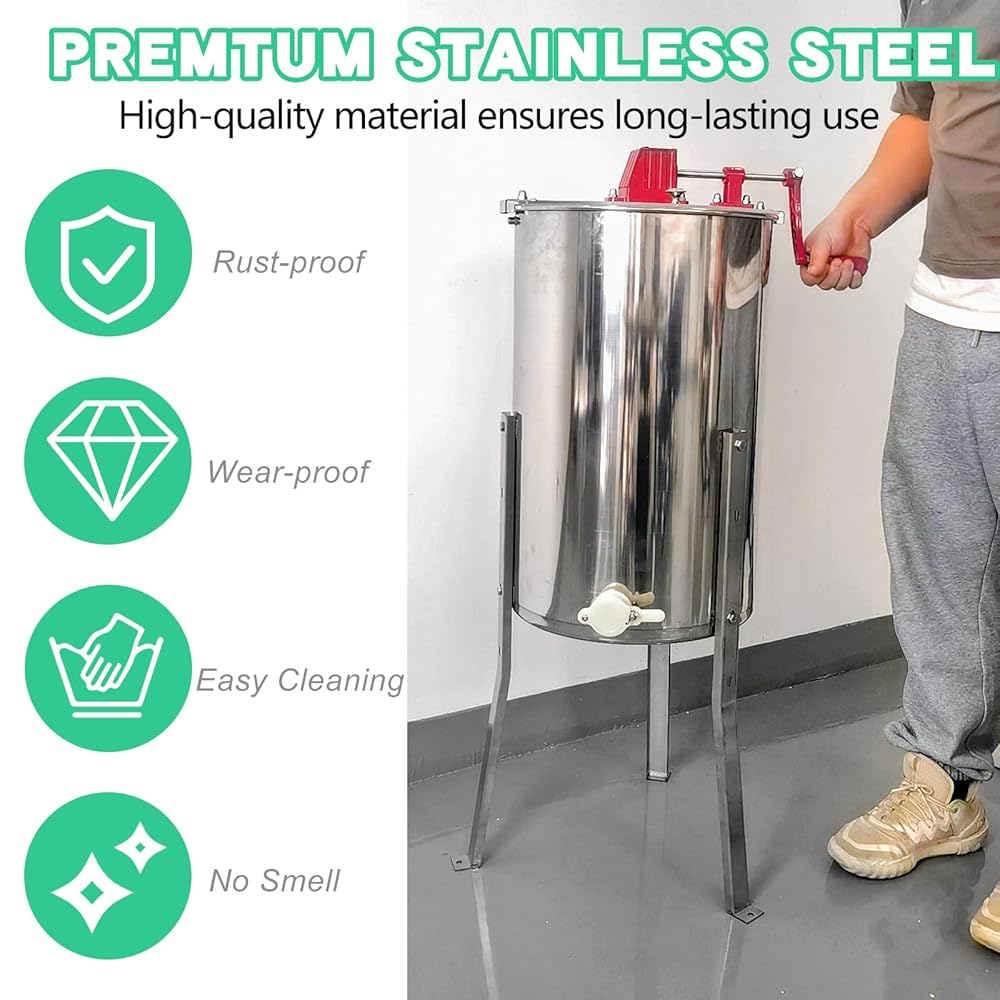 مستخرج عظيم مستوى الدخول. تقوم التقنية شبه المعلقة بوضع جهاز الإطار الداخلي في البرميل، ويسقط العسل المخفوق مباشرة إلى أسفل البرميل دون ملامسة الحطام، مما يضمن نظافة العسل.
