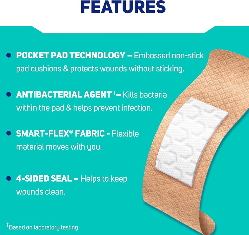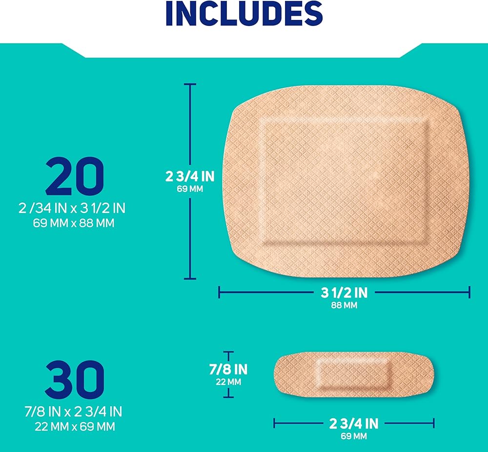 ضمادات قماشية ذكية مرنة من كير ساينس، 50 قطعة بأحجام متنوعة | حماية مرنة للإسعافات الأولية والعناية بالجروح