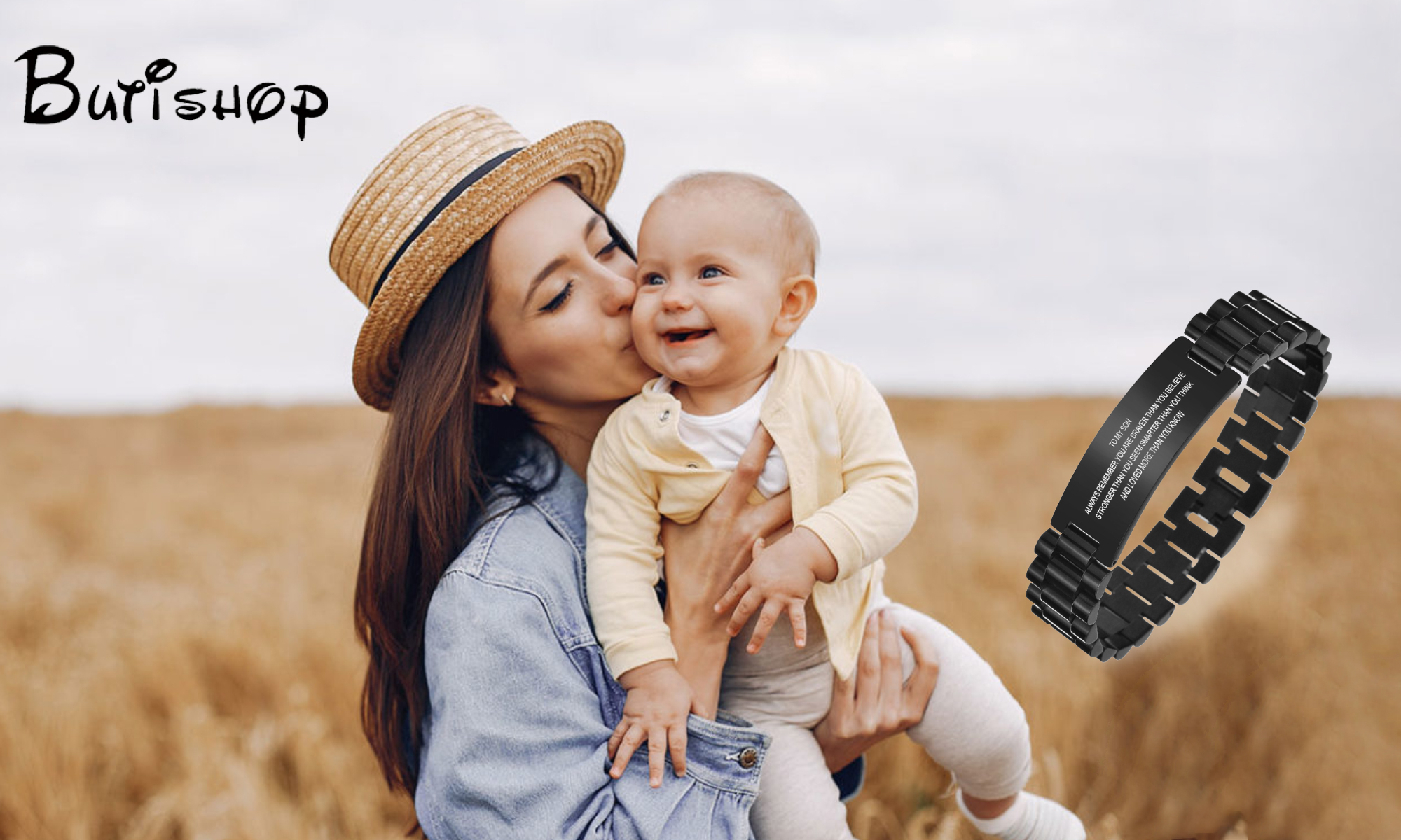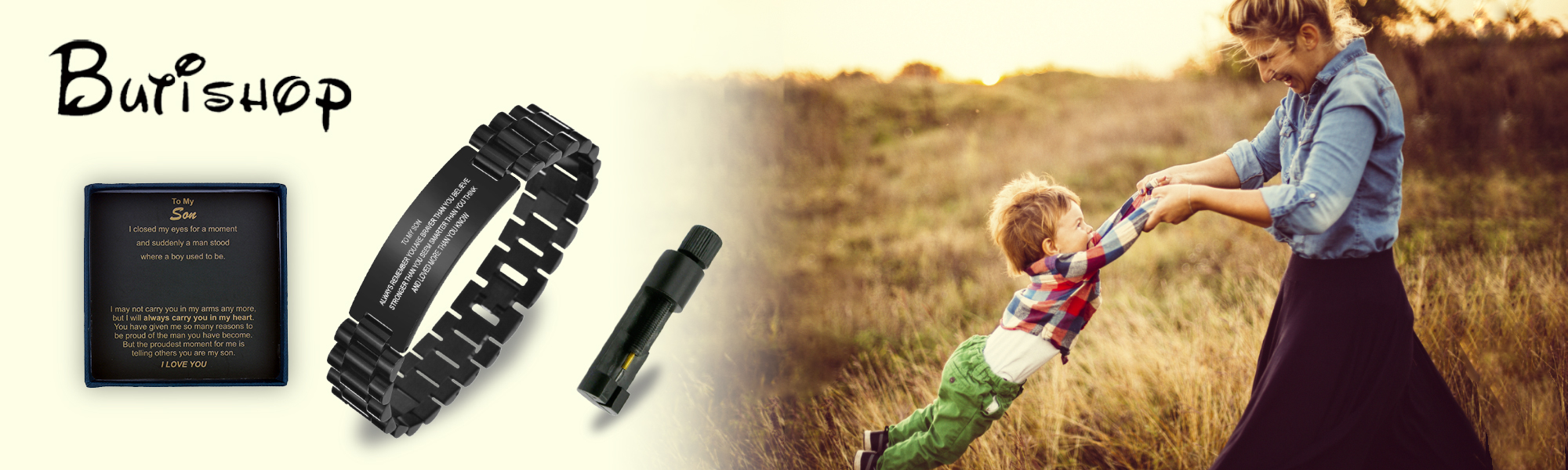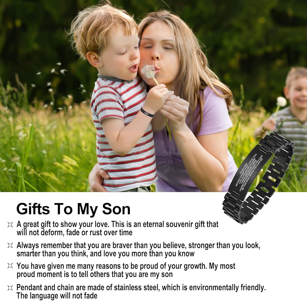 【تحتوي العبوة على: سوار مخصص لابنك، أداة تعديل السوار، بطاقة دافئة لابنك، لا تنس أبدًا أنني أحبك، الحياة مليئة بالصلابة، لن تخسر أبدًا، فقط انطلق للأمام