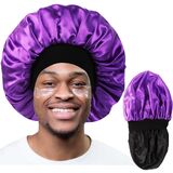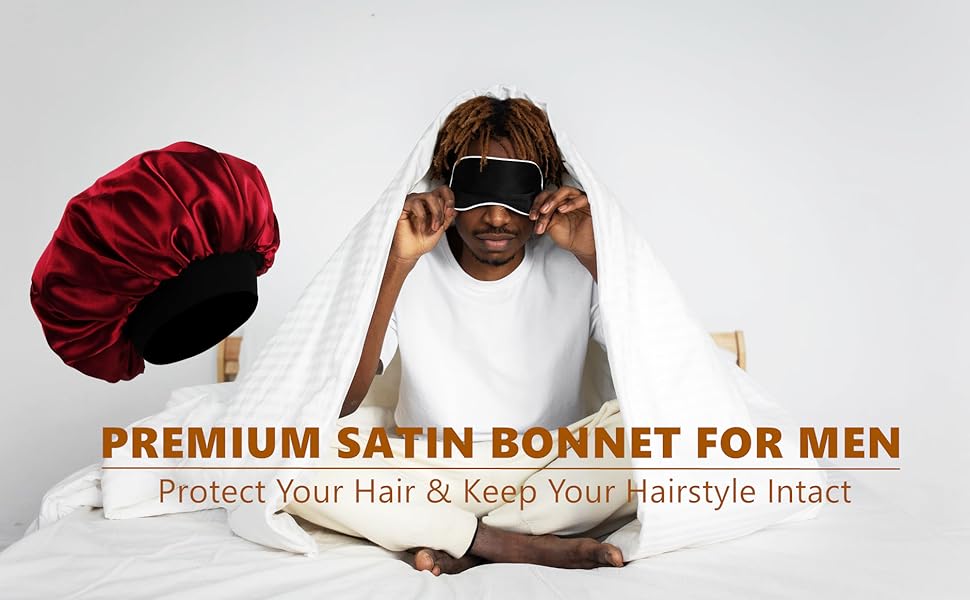 قلنسوة رجالية للشعر المجعد للنوم مع شريط عريض مسطح وقابل للتمدد: قل وداعًا لـ "الصداع" و"نزيف اللون" و"الحكة". مستوحاة من قبعة النوم المرنة التقليدية الضيقة، قمنا بتطوير هذه القطعة العريضة بدون إجهاد للنساء والرجال لحماية الشعر. منتجاتنا مريحة للغاية دون ترك علامات على الجبهة. عصابة الرأس الناعمة القابلة للتمدد لسهولة الارتداء والخلع. تبقى ثابتة طوال الليل ولا تنخلع.