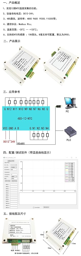 جهاز إرسال درجة الحرارة ذو 12 قناة NTC إلى 485 وحدة اكتساب 10K الثرمستور Modbus RTU