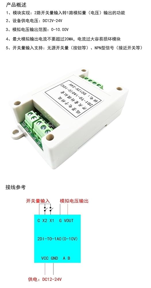 2-way switch input to 1-way analog output 2DI to 1AO module with adjustable 0-10V voltage