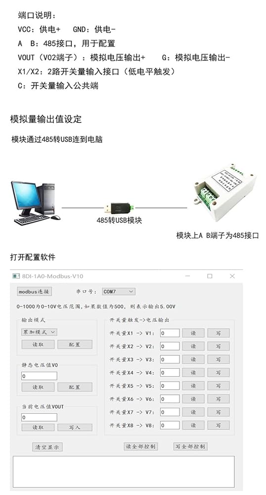 مدخل تبديل ثنائي الاتجاه إلى مخرج تناظري أحادي الاتجاه 2DI إلى وحدة 1AO مع جهد 0-10 فولت قابل للتعديل