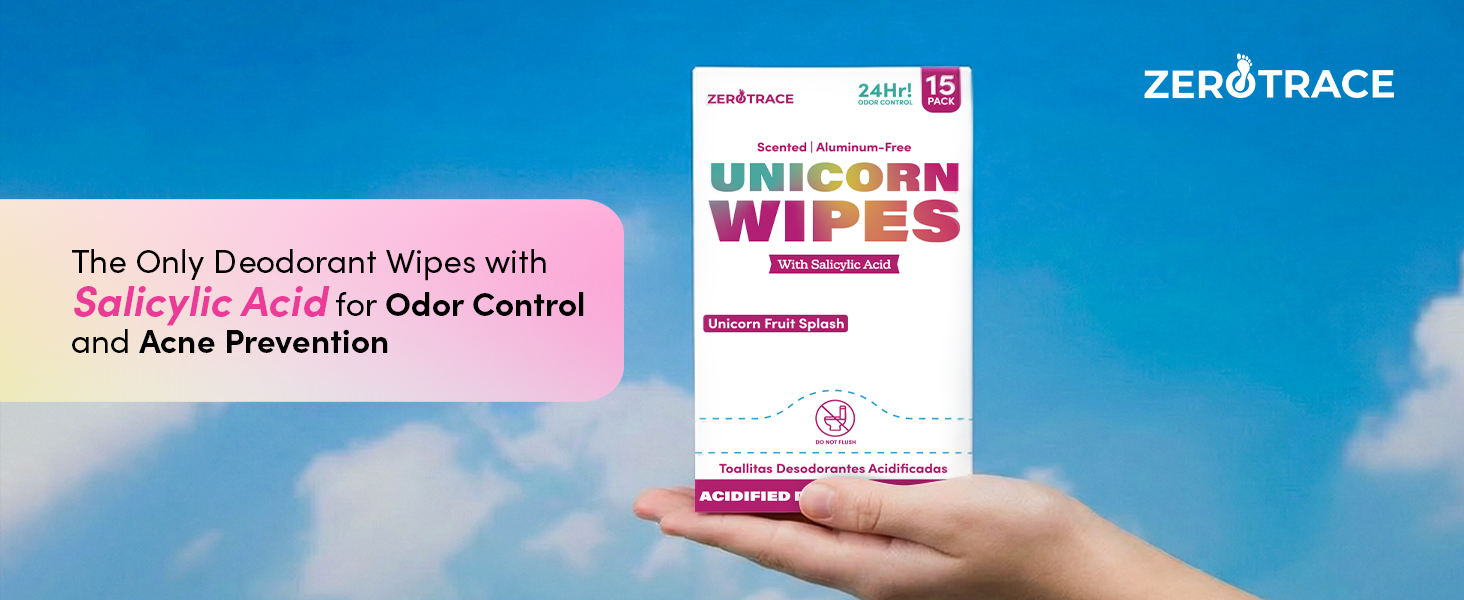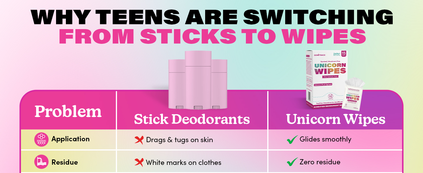 مناديل مبللة مزيلة لرائحة العرق زيرو ترايس يونيكورن للنساء المراهقات والبنات - 15 عبوة مناديل مزيلة لرائحة العرق أثناء السفر - مناديل للعرق تحت الإبط مع حمض الساليسيليك - التحكم في رائحة الجسم - مغلفة بشكل فردي وخالية من الألومنيوم