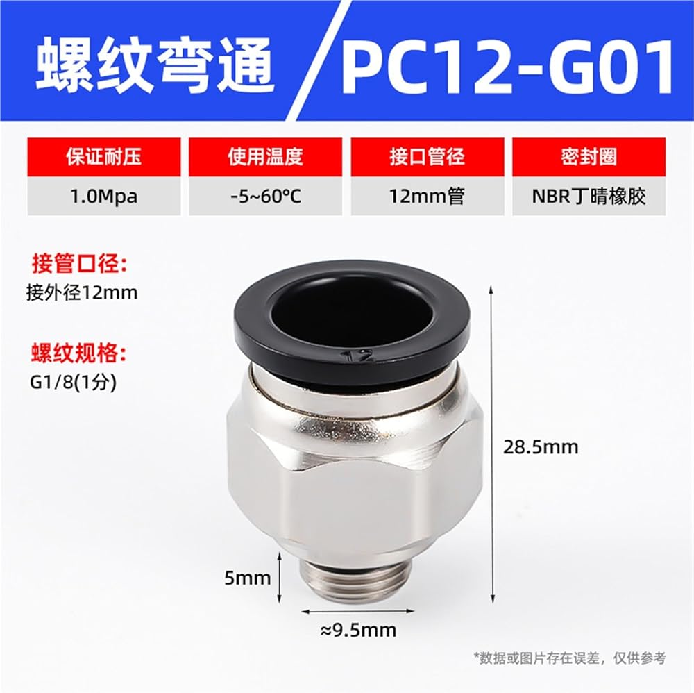 أسود/أبيض G-thread مستقيم من خلال موصل سريع PC8-02/10-02 المقابس مكون هوائي 1 قطعة (PC12-G01)