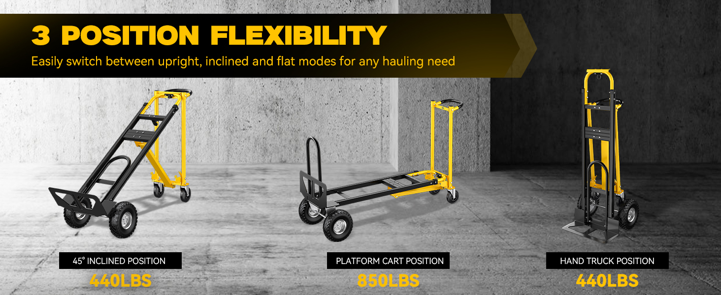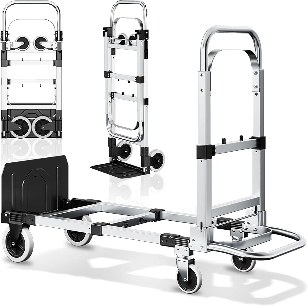 【هيكل قوي ومتين】 مصنوعة من سبائك الألومنيوم المقوى وأنابيب فولاذية A3، توفر هذه الشاحنة اليدوية القابلة للطي سعة تحميل تصل إلى 1000 رطل في وضع العجلات الأربع و440 رطلاً في وضع العجلتين، مما يجعلها مناسبة لمجموعة متنوعة من المهام الثقيلة.