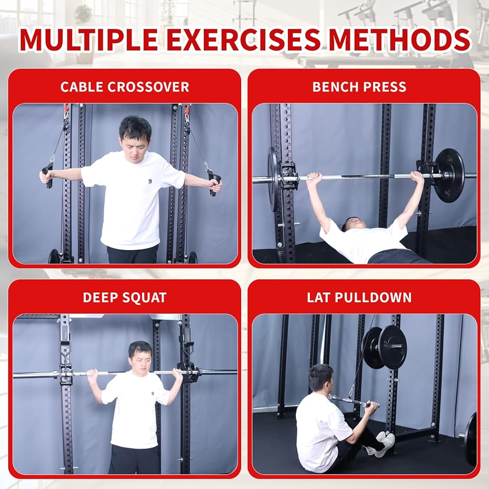 Features: This is a set of auxiliary workout accessories, smith machine attachments mounted on the square rack with different accessories to achieve multifunctional fitness and exercise.