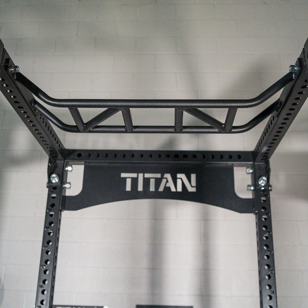 The TITAN Series Multi-Grip Pull Up Bar from Titan Fitness is compatible with the 90 and 100-inch TITAN Series Power Rack. The bar features eight 32mm grip options for traditional, narrow, angled, and neutral grip pull-ups. With an inside length of 42-inches, it spans your entire TITAN Series Power Rack and adds depth to your full-body workouts. The pull-up bar has the option to be mounted to a 6-inch drop or increase. Change which grips you use to affect the difficulty and isolate the muscle groups you need for pull-ups, muscle-ups, and many more.