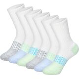 For girls who never slow down, Hanes Absolute™ Active Socks are crafted from our very best cotton-blend fabric to deliver softness she'll feel with every step. An extreme cushioned footbed adds plush comfort underfoot, while built-in arch support helps create a secure, stay-put fit for active days. The smooth, seamless toe design reduces distraction caused by bulky seams, making these girls' socks ideal for school, sports, play, and everything in between. Moisture-wicking technology works to keep her feet cool, dry, and comfortable, even during high-energy activities. These socks for girls help prevent rubbing, while pairing easily with sneakers and athletic shoes. Cute, sporty designs add fun style she'll love, while the durable construction stands up to repeated wear and washing. This convenient 6-pair pack offers unbeatable quality at a value parents appreciate, making it easy to stock up on everyday essentials. Hanes Absolute™ Active girls' socks deliver trusted comfort, performance, and durability—because her comfort should never compromise your budget or her busy lifestyle.