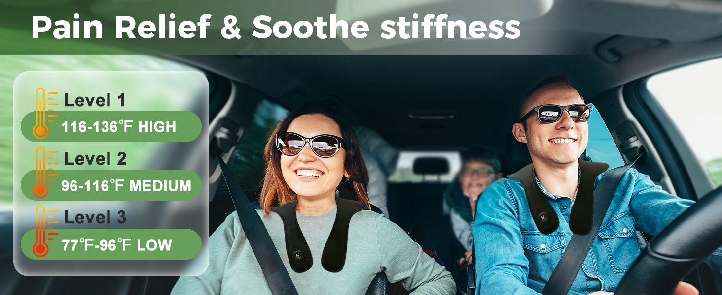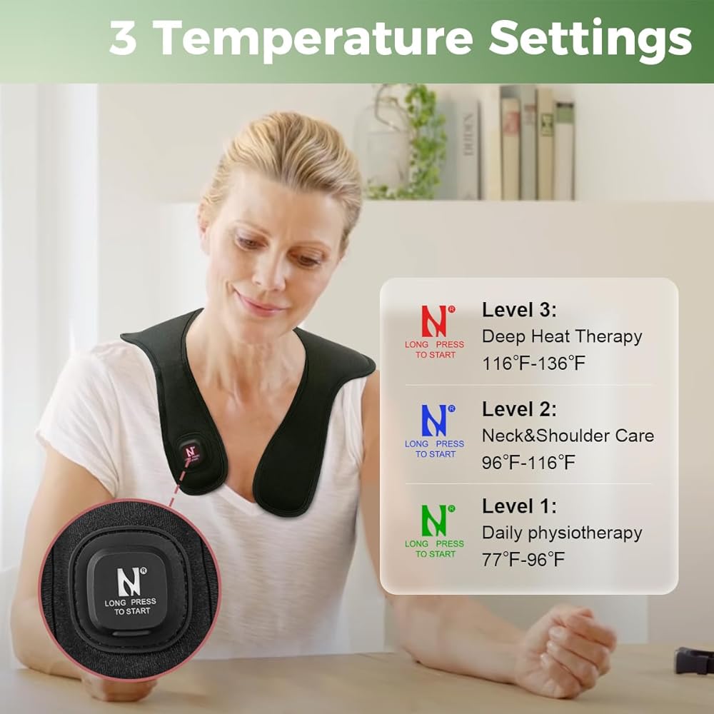[3 مستويات تسخين] توفر وسادة التسخين اللاسلكية للرقبة 3 مستويات لدرجة الحرارة: عالية (116-136 درجة فهرنهايت)، متوسطة (96-116 درجة فهرنهايت)، ومنخفضة (77-96 درجة فهرنهايت). سواء كنت بحاجة إلى حرارة شديدة لتخفيف توتر العضلات العميق أو دفء لطيف من أجل الراحة اليومية، يمكنك تخصيص تجربة التدفئة الخاصة بك وفقًا لاحتياجاتك.