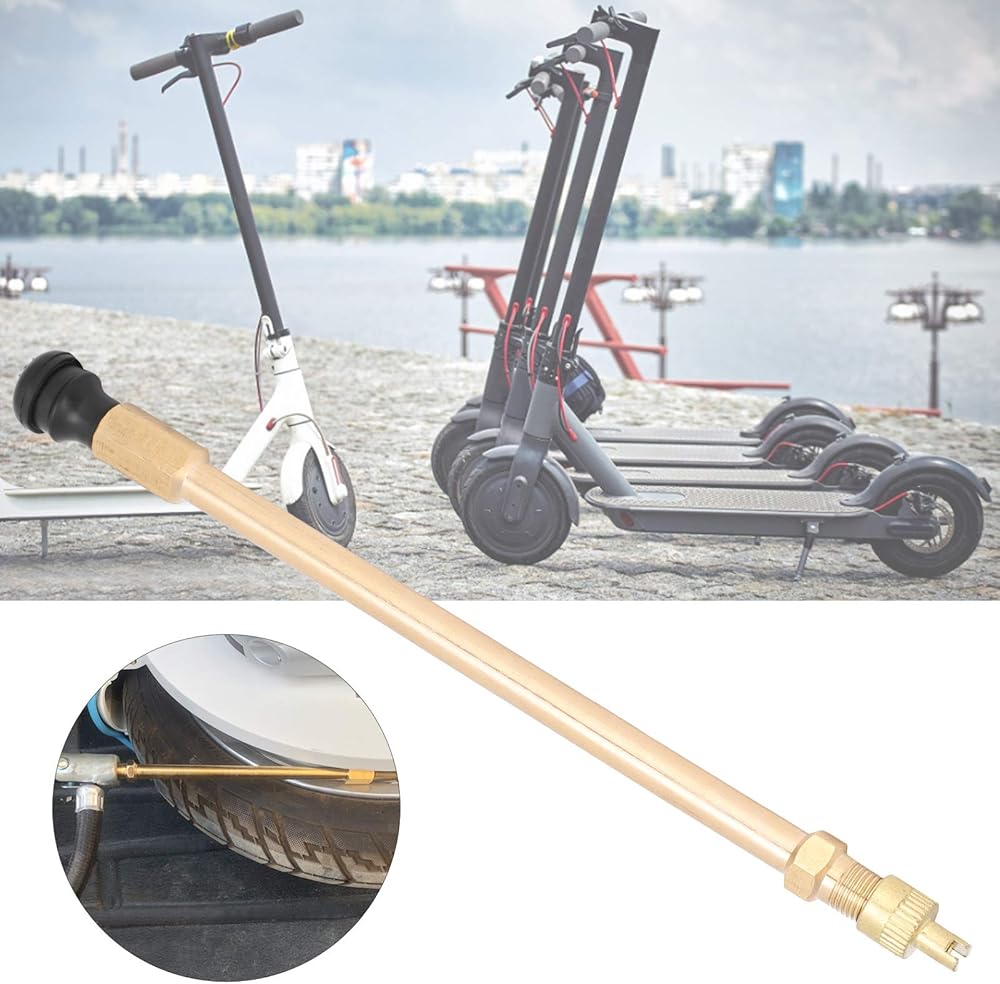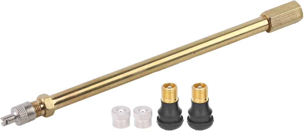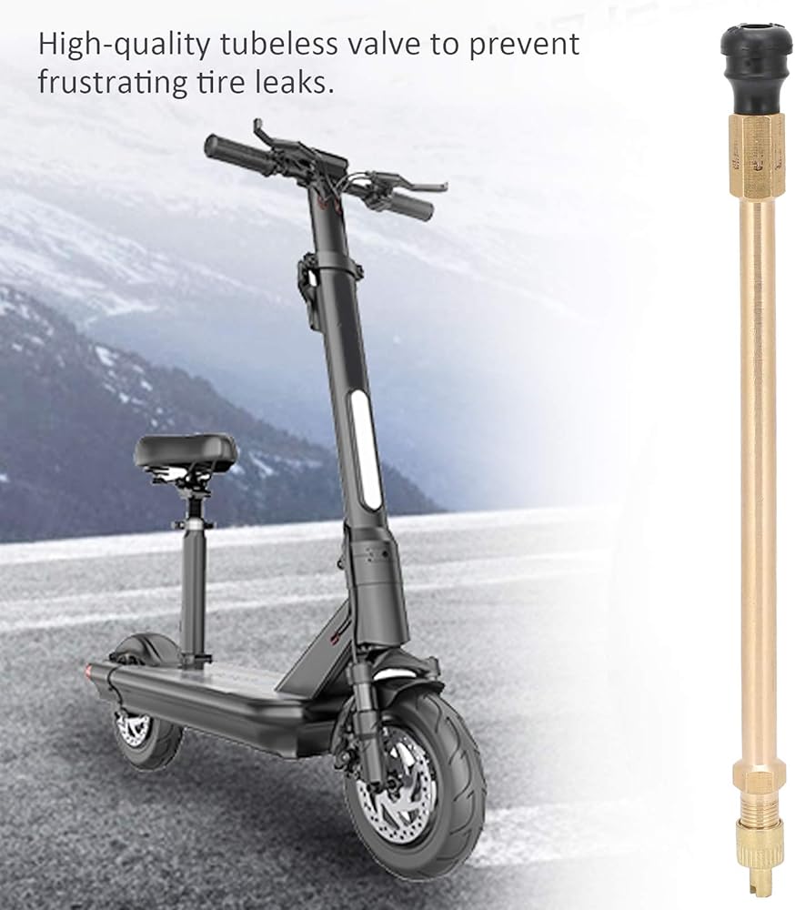 Specifications: Scooter tire valve replacement set contains 2pcs tubeless tire valve replacement parts and 1pc multifunctional extension pipe. The multifunctional tubeless tire valve extension adaptor is 5.9 inches long and the inner thread size is 0.39 inches