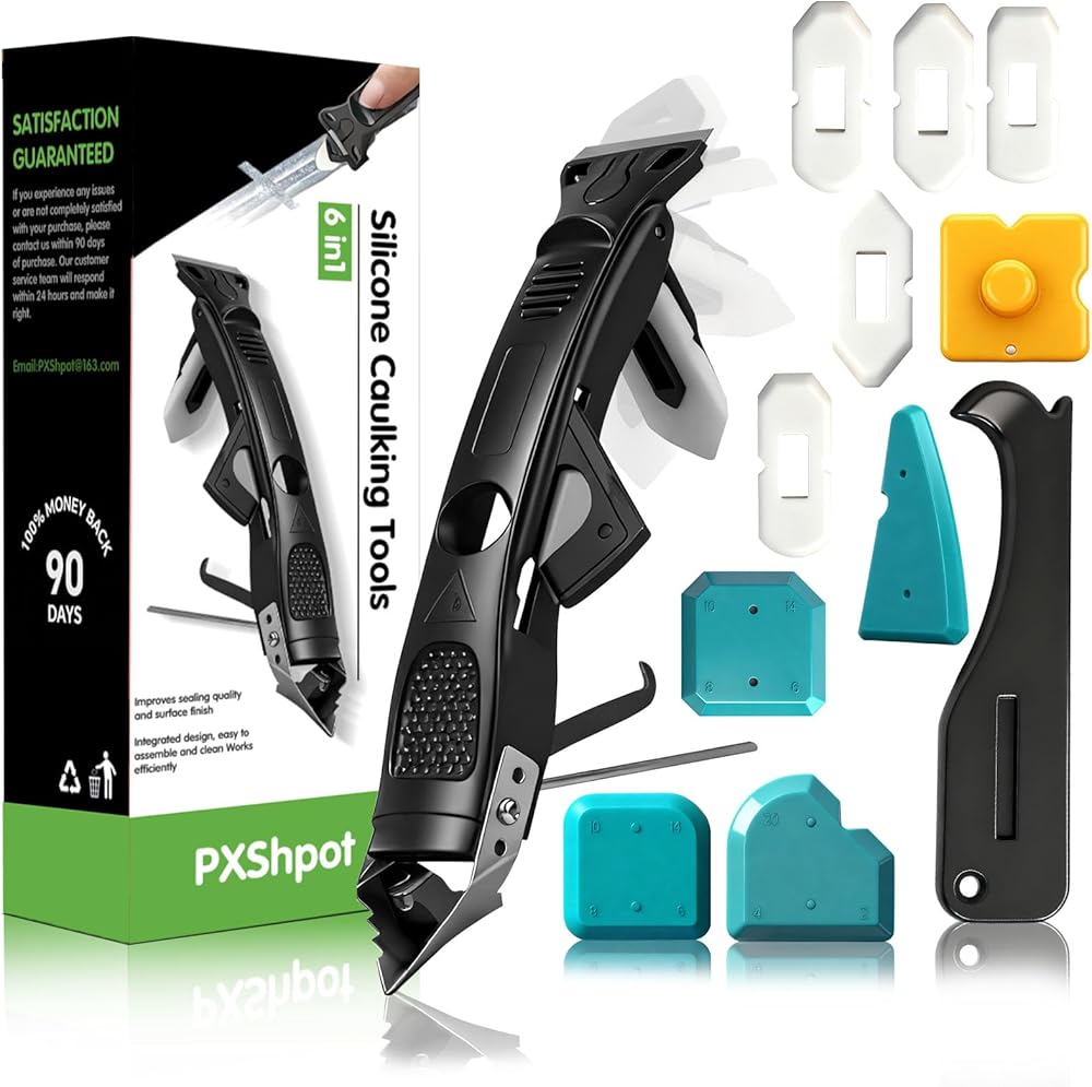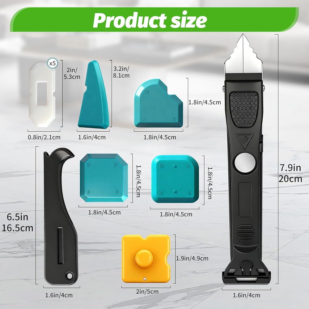 【تصميم متعدد الوظائف 6 في 1】 يتضمن مزيل السد، وكاشطة الجص، وسكين المعجون، ومنعمات السد المتعددة في أداة واحدة. تعامل بسهولة مع الفجوات ذات الأحجام المختلفة، وقم بإزالة مانع التسرب الزائد، وحقق تشطيبات نظيفة واحترافية دون تنظيف فوضوي.