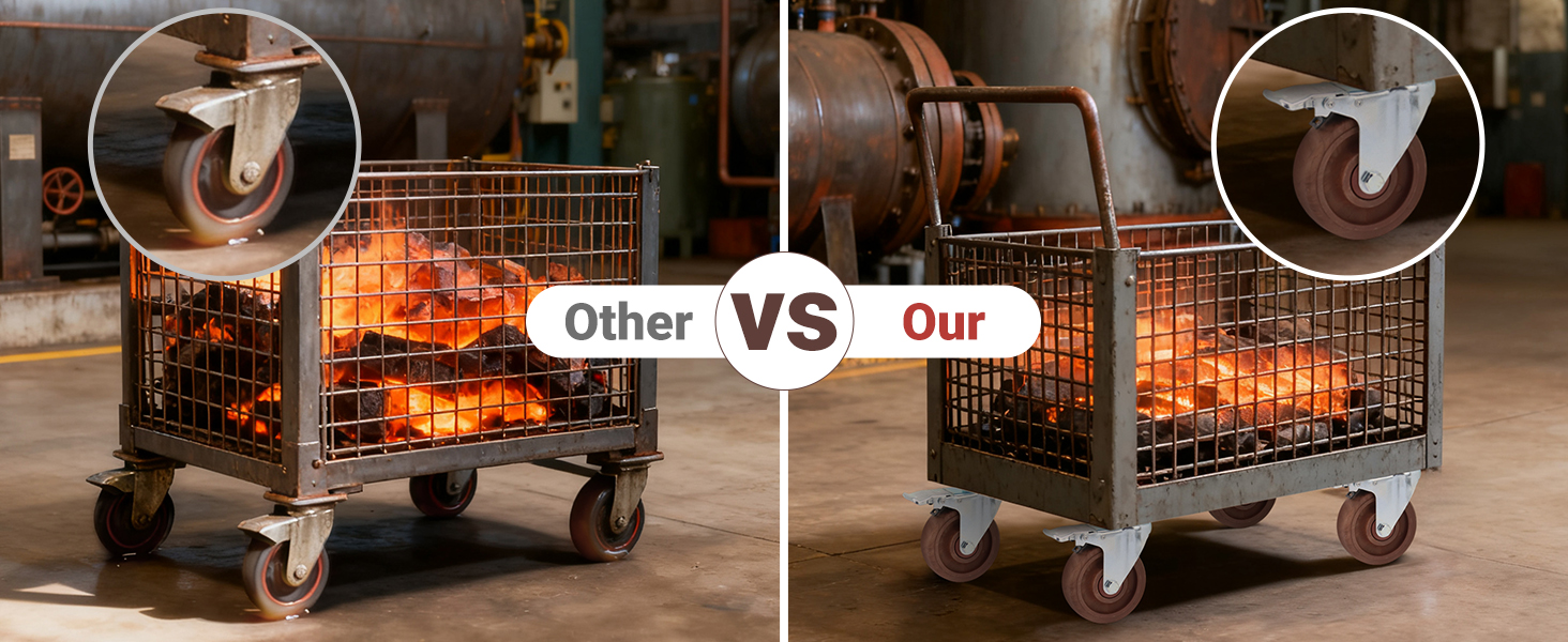 متينة وقوية - عجلات العربة مقاس 3 بوصات مصممة بقلب معزز ومحامل كروية مزدوجة دقيقة، كل عجلة صناعية تتحمل درجات الحرارة العالية تدعم ما يصل إلى 450 رطلاً. يوفر المداس القوي المقاوم للتآكل حماية ممتازة للأرضية، وامتصاص الصدمات، وأداء طويل الأمد تحت الأحمال الثقيلة