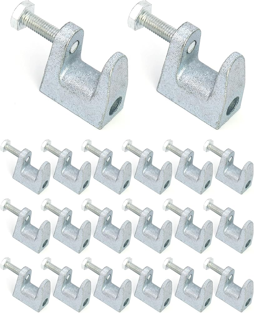 QWORK Beam Clamp، 20 قطعة 5/16 بوصة مشبك شعاع أمان من الحديد المطلي بالزنك، فتحة فك 13/16 بوصة