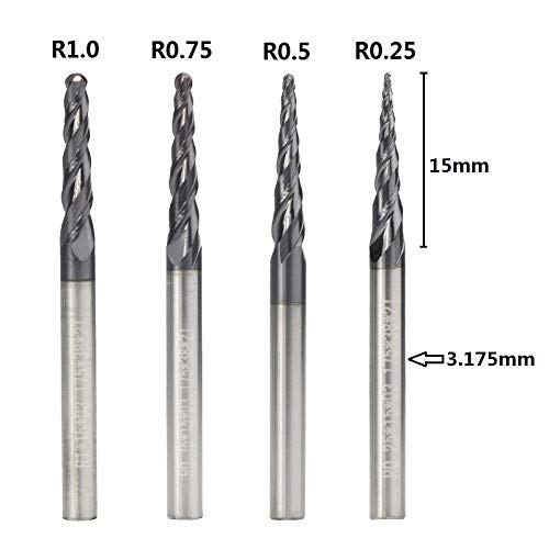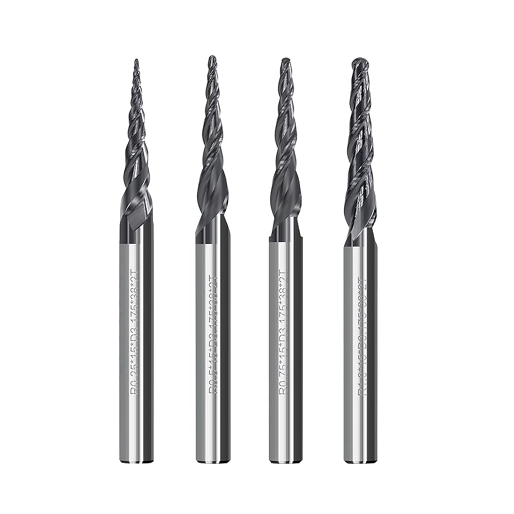4 قطعة 2-الناي مدبب الكرة الأنف دوامة نهاية مطحنة R0.25-R1.0 TiAIN المغلفة باستخدام الحاسب الآلي قاطعة المطحنة 3.175 مللي متر عرقوب كربيد النجارة النقش بت