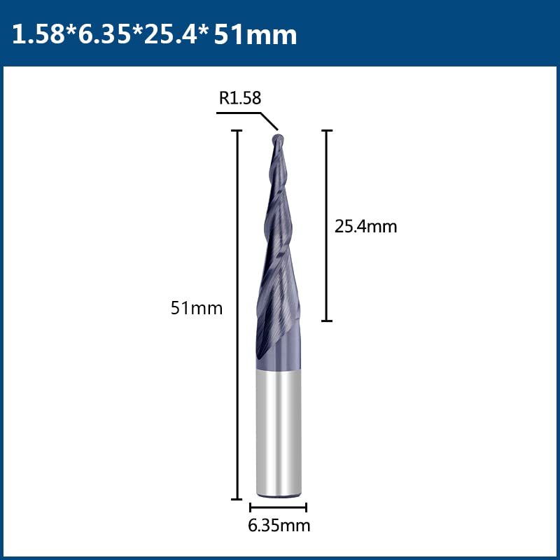 1 قطعة مطحنة نهاية كربيد التنغستن الصلبة R0.4/R1.58 مدبب الكرة الأنف نهاية مطحنة 2 الناي 6.35 مللي متر عرقوب كربيد Endmills قاطعة المطحنة المعدنية