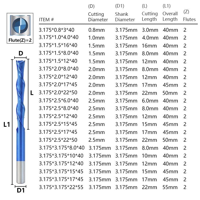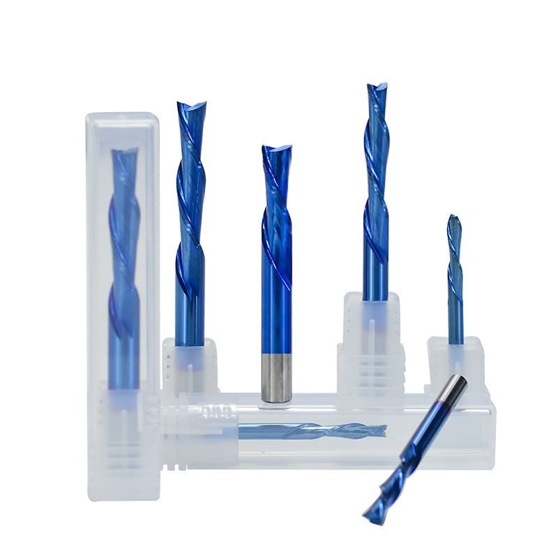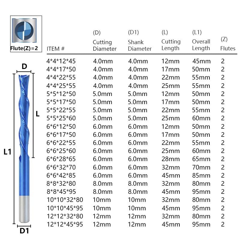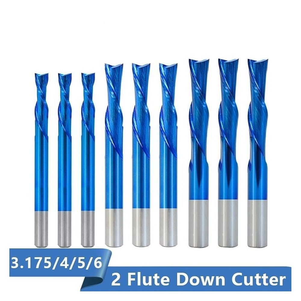 لقم توجيه حلزوني 2 قاطع فلوت 3.175-12 مم عرقوب اليد اليسرى للأسفل قاطع كربيد لولبي نهاية مطحنة حتى أسفل لقمة ضغط لنحت الخشب