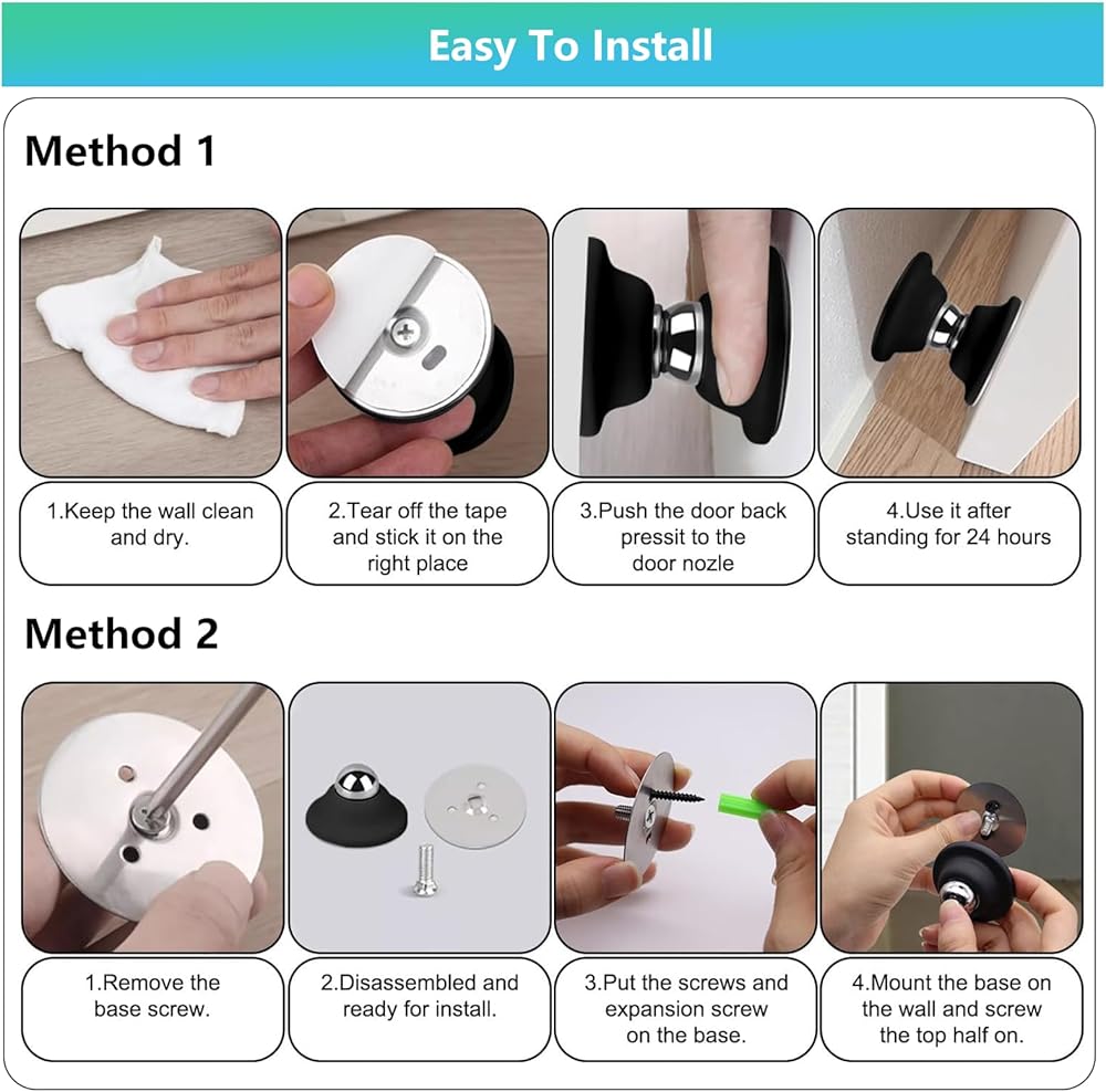 【تصميم متين وواقٍ】مصنوع من السيليكون الفاخر والفولاذ المقاوم للصدأ المضاد للصدأ، حامل باب مغناطيسي مقاوم للماء ويدوم طويلاً. يحمي الجزء الخارجي من السيليكون الناعم الأبواب والجدران من الخدوش والانبعاجات والاصطدام