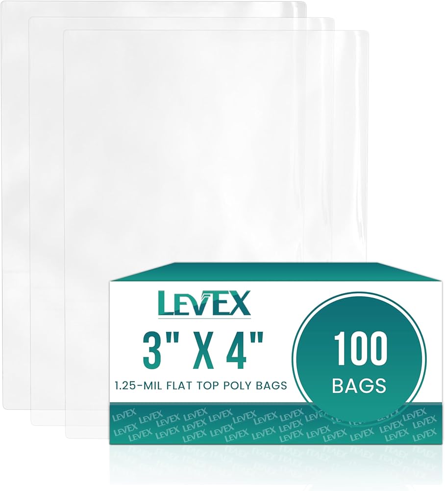 Levex - 3 × 4 بوصة (100 قطعة) سطح مسطح مفتوح النهاية - أكياس بولي شفافة سعة 1.25 مل للتغليف والشحن والتخزين والطعام (لا تحتوي الحقائب على ختم أو مطبوعات)