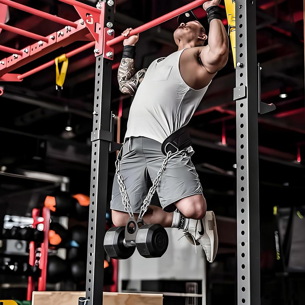 مرفق سريع وآمن لأحزمة الغمس الموزونة: يسمح بربط سريع ومستقر للدمبل أو أجراس الكيتل بأحزمة الغمس، مما يتيح عمليات السحب الموزونة والانخفاضات وقرفصاء الحزام مع انتقالات سلسة بين المجموعات من أجل تدريبات أكثر كفاءة وعالية الكثافة.