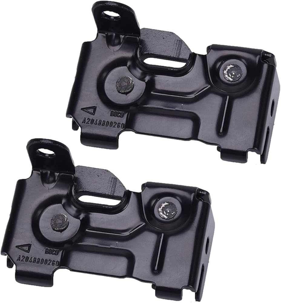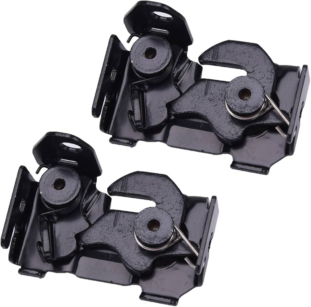 This set includes a left and right safety catch mechanism for securing the hood in place. Crafted from sturdy steel material, it helps maintain proper hood alignment and closure. The black finish provides a low-profile appearance. Installation requires basic tools and can be completed as part of routine vehicle inspection or maintenance. This part offers a straightforward replacement option when addressing wear or damage to existing components.