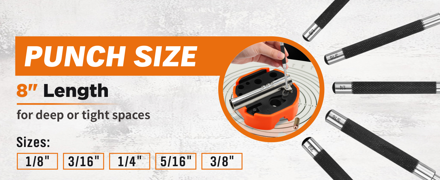 • [نصائح مصنوعة بدقة] تتميز كل لكمة بطرف مجوف نصف كروي لتوسيط الدبوس ومنع الانزلاق أو خدش السطح. يوفر ضربة نظيفة وصلبة دون إتلاف المكونات الصغيرة أو الأسطح النهائية