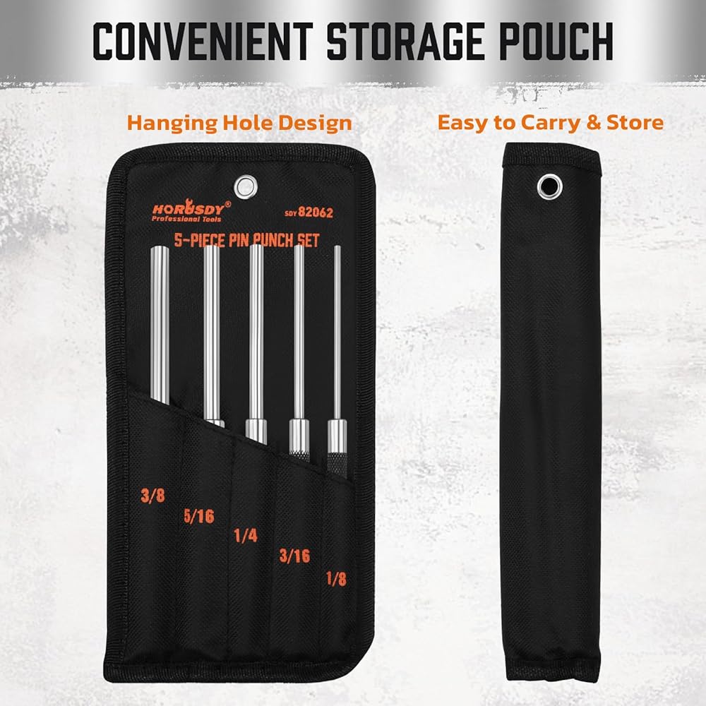 مجموعة خرامة دبوس دوارة مكونة من 5 قطع من HORUSDY، مجموعة أدوات ثقب دبوس من الفولاذ الكربوني 8 بوصة (1/8 بوصة إلى 3/8 بوصة) مع حقيبة تخزين لإصلاح الأسلحة والساعات والمجوهرات