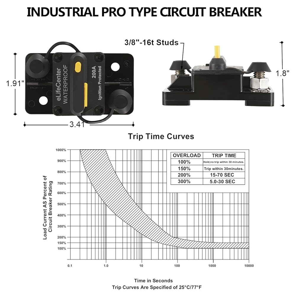 حجم المسمار: 3/8"-16. متوافق مع أنظمة تتراوح من 12 إلى 48 فولت وقادر على التعامل مع تيارات تصل إلى 200 أمبير، تم تصميم قاطع الدائرة هذا لتلبية متطلبات الإعدادات الكهربائية المختلفة، مما يضمن قابلية تطبيق واسعة وأقصى قدر من المرونة لاحتياجاتك الخاصة.