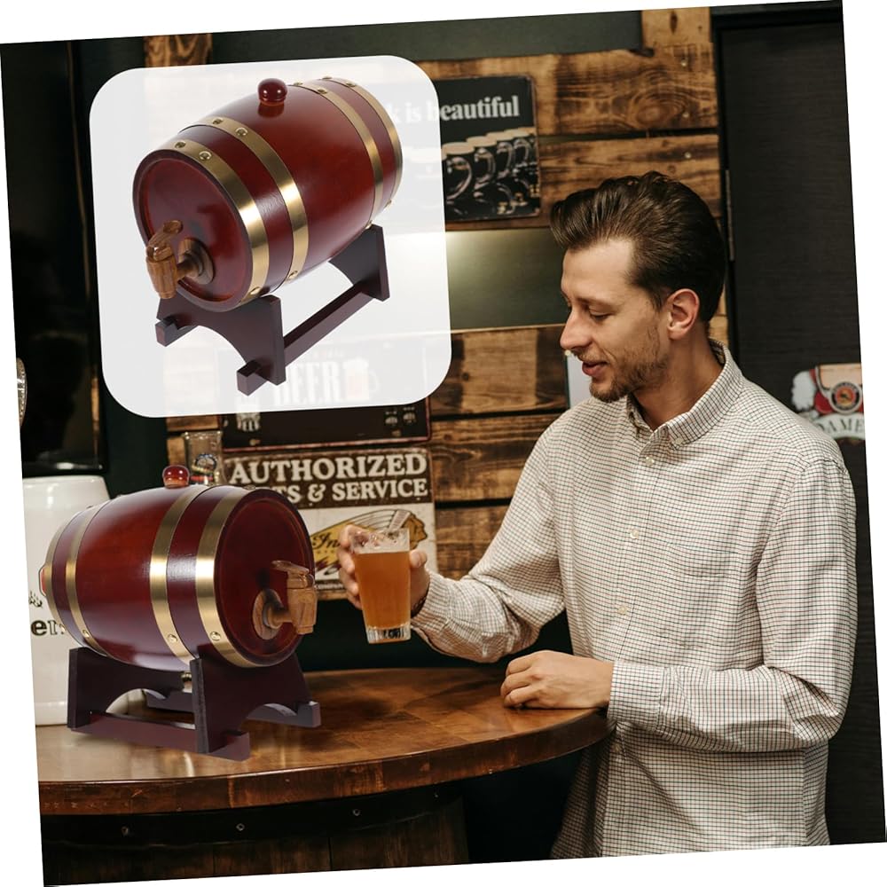 أسطوانة البيرة - مع صنبور، قد يكون من الأسهل عليك توزيع النبيذ، ويمكن للقاعدة الخشبية أن تحمل أسطوانة النبيذ بثبات، زجاجة نبيذ مفيدة