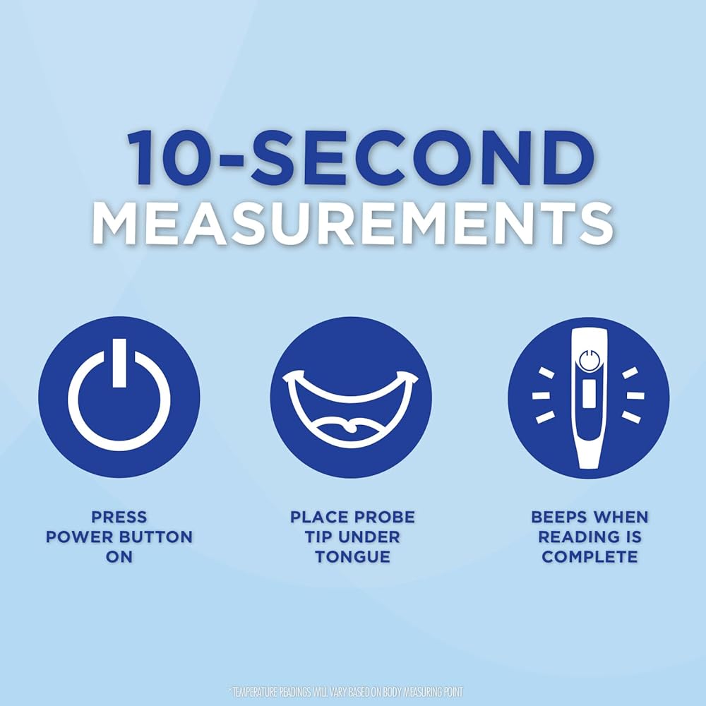 OUTSTANDING FEATURES AND BENEFITS—Whole family-friendly, the Veridian 10-Second Digital Thermometer includes 9-second measurement, a soft flexible tip with an alert when the reading is complete, an alarm when a fever is present, and hygienic storage case.