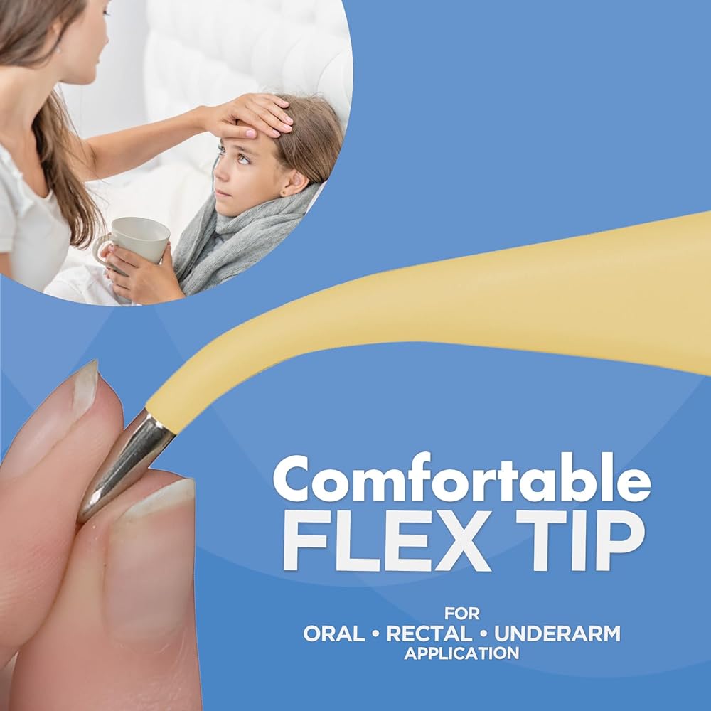 COMPLETE TEMPERATURE MONITORING — all of the features you look for in a traditional stick thermometer: clinical accuracy, Fahrenheit/Celsius switchable measurements, last-reading memory recall, fever alert notification, automatic shut-off plus replaceable LR41 battery included. One-year limited warranty.