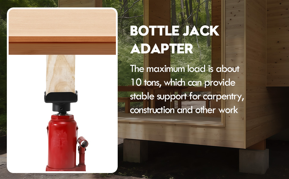 هيكل فولاذي عالي التحمل: محول جاك على شكل زجاجة ملحوم من فولاذ عالي الجودة ومغطى بطبقة من المسحوق. مع حمولة قصوى تبلغ حوالي 10 أطنان ومناسبة للأعمدة الشائعة مقاس 4 × 4 بوصة (الحجم الاسمي) لتوفير دعم قوي ومستقر لوظائف البناء والرفع