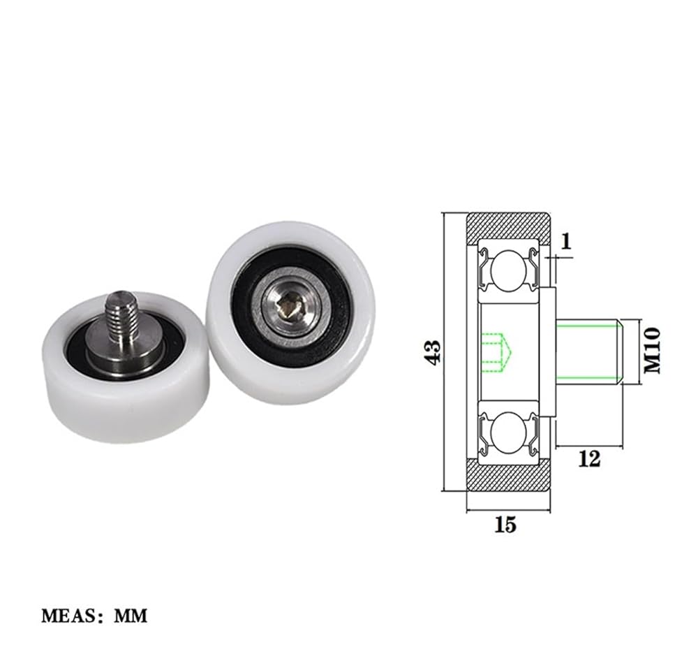 Externally threaded POM plastic-coated bearing BS620243-15C1L12M10 high wear-resistant nylon threaded guide wheel