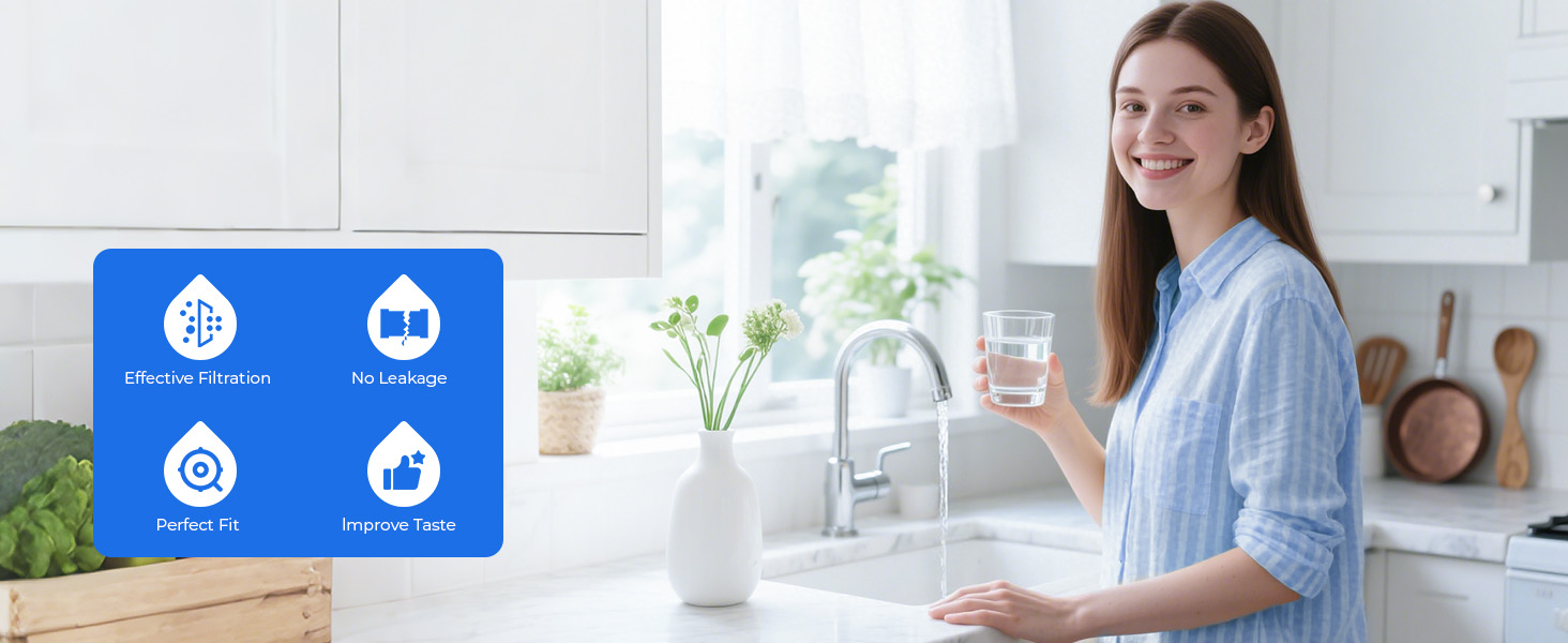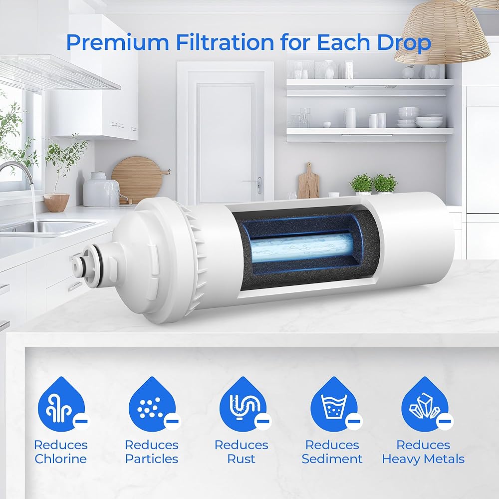 • فلتر كتلة الكربون ذو الكثافة: يقلل من جزيئات الرواسب التي يصل حجمها إلى 1 ميكرون ويقلل من الطعم والرائحة المرتبطة بالكلور.